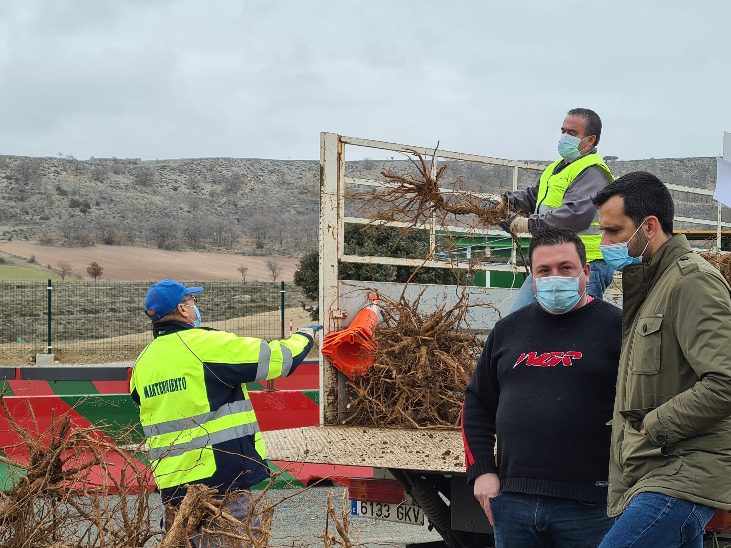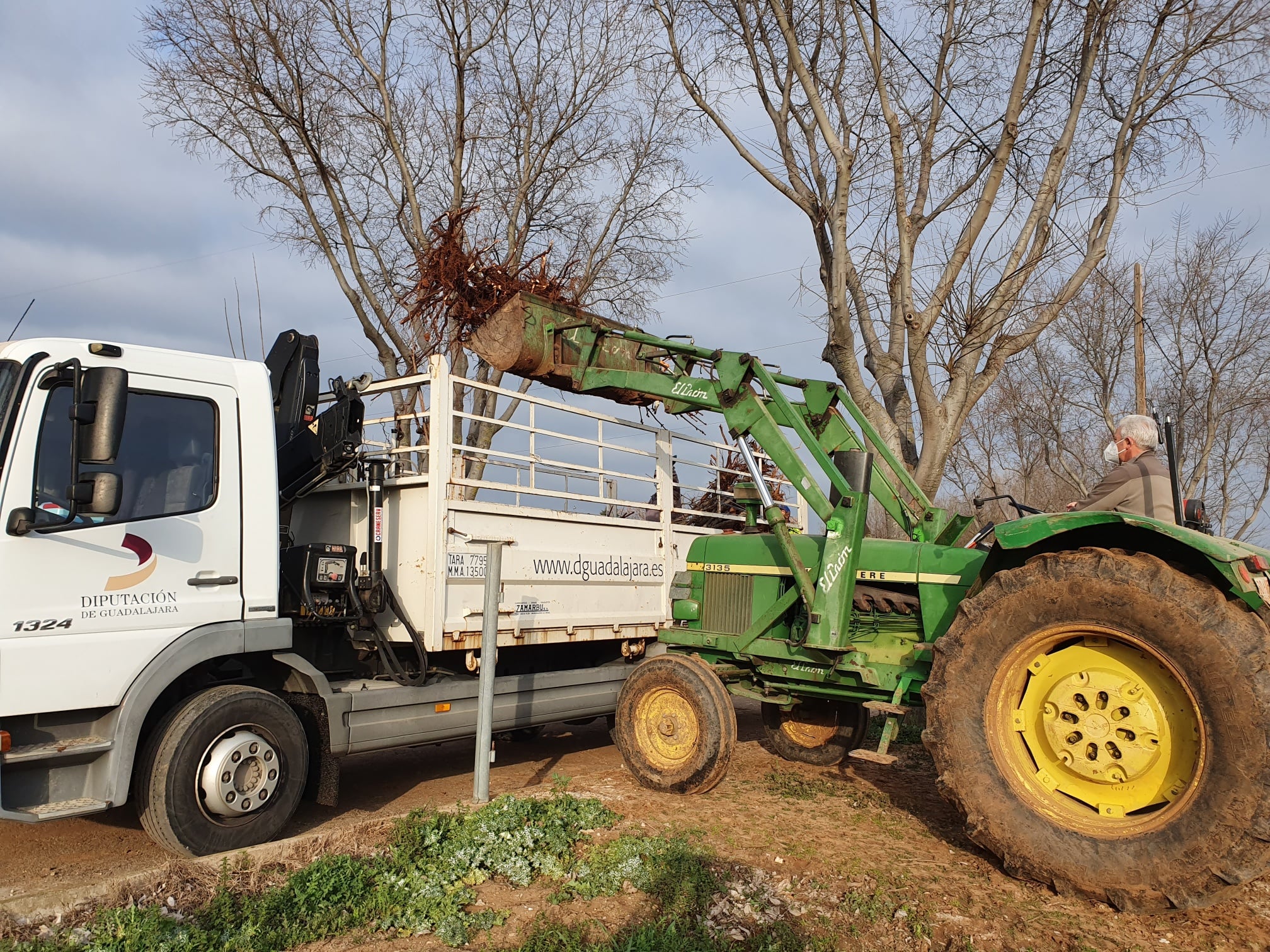 Gregorio ha acompañado a los operarios de la Diputación en el reparto de ejemplares al municipio de Alcolea del Pinar, donde esperaba su alcalde Alberto Guerrero para recepcionarlos. «En total hemos recibido 36 árboles que vamos a repartir entre Alcolea y sus pedanías con el fin de ornamentar espacios municipales».