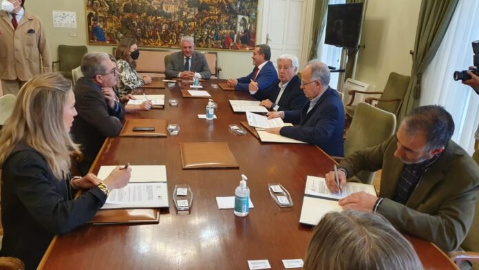 José Juan Fernández, acompañado por el delegado de Agricultura, Agua y Desarrollo Rural de Guadalajara, Santos López, ha acudido esta semana a la firma entre los grupos de Guadalajara y la Diputación provincial para el desarrollo de los convenios para crear unidades técnicas de asistencia a los ayuntamientos en la tramitación y gestión de fondos europeos.
