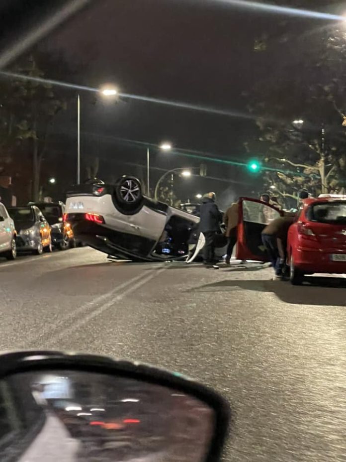Un coche terminaba en la tarde del miércoles completamente volcado, por un accidente en la calle Cifuentes, de Guadalajara. Ha ocurrido a la altura del aulario de la Universidad de Alcalá.