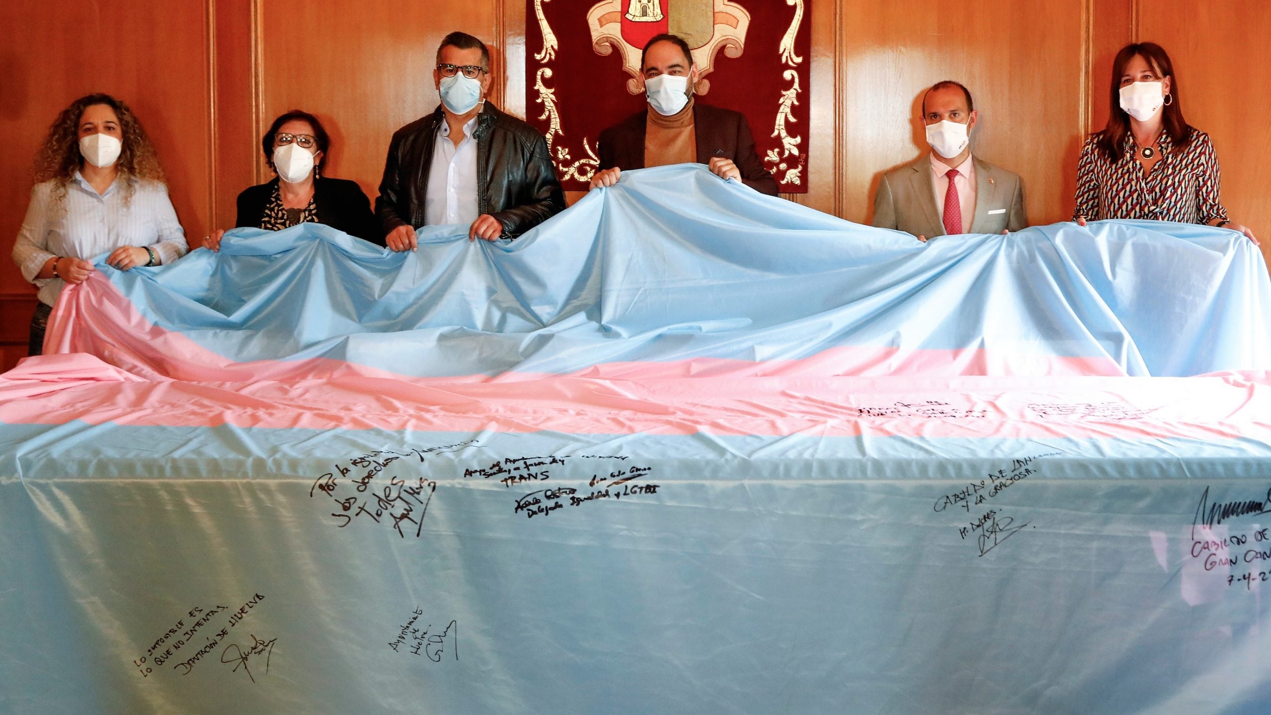 Las Cortes de Castilla-La Mancha han enviado este miércoles «un mensaje de unidad en favor de la lucha por los derechos de las personas trans«, según expresión de la nota de prensa emitida por el Parlamento regional. Ha sido la de este 21 de abril una jornada de encuentro con colectivos, en la que el presidente del Parlamento autonómico, Pablo Bellido, y la consejera de Igualdad, Blanca Fernández, han firmado una bandera trans que está realizando un recorrido por todas las comunidades autónomas.