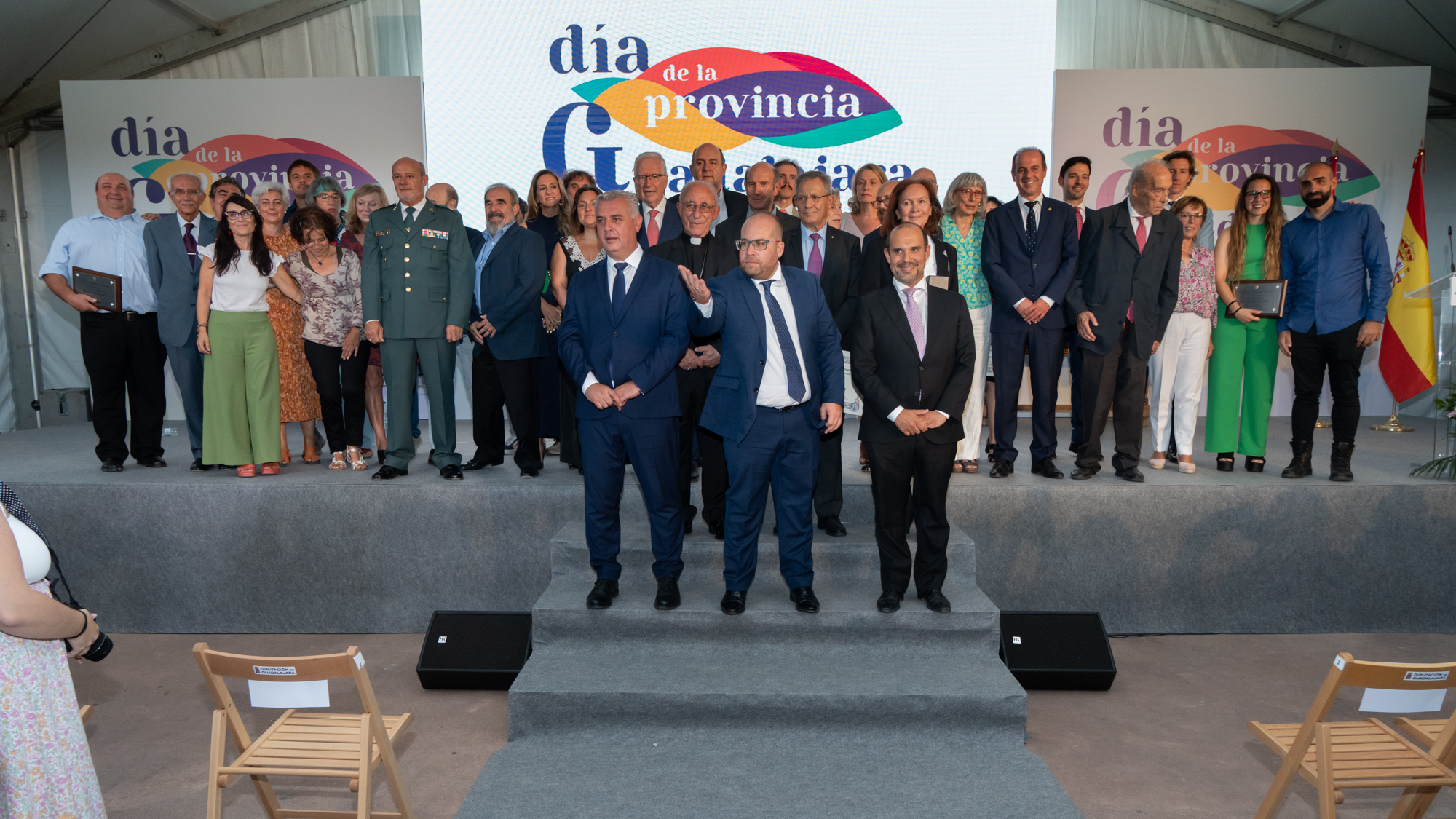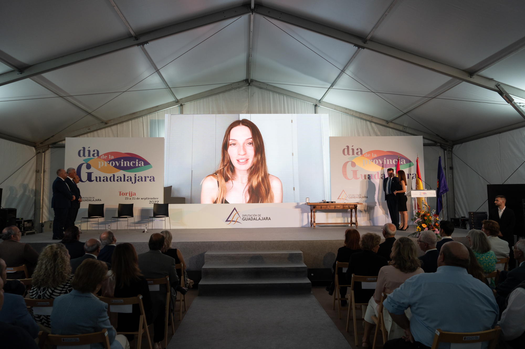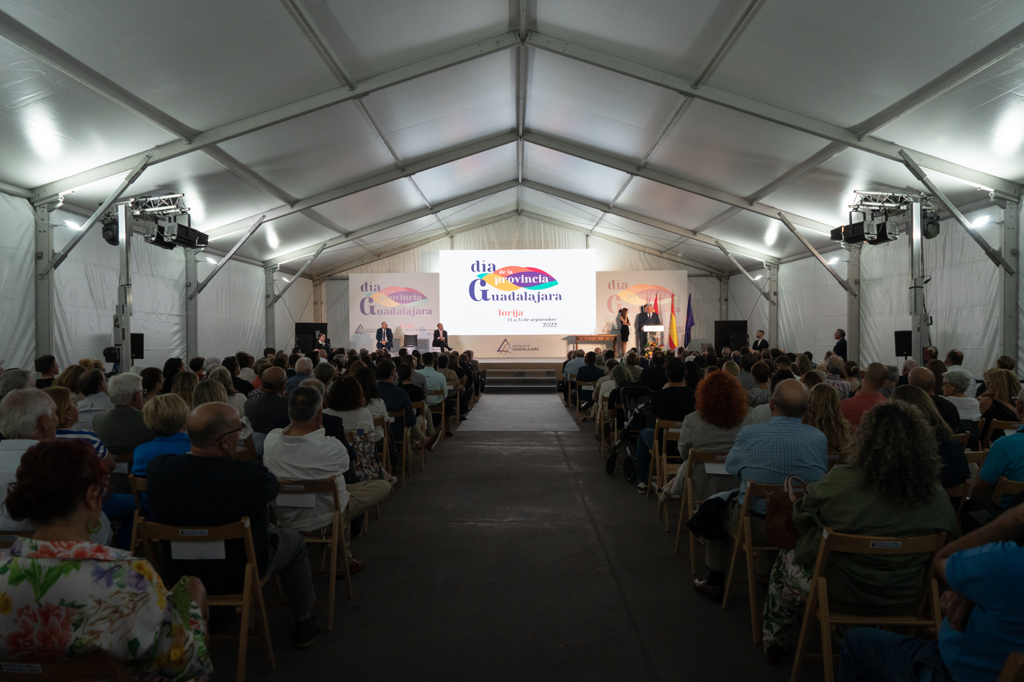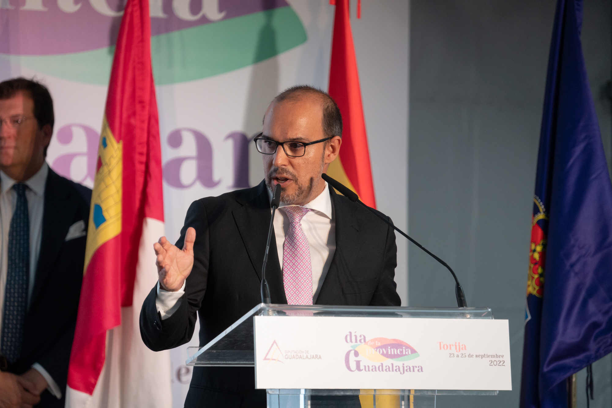 El acto institucional del Día de la Provincia estuvo presidido, junto a José Luis Vega, por el alcalde de Torija, Rubén García, y el presidente de las Cortes de Castilla-La Mancha, Pablo Bellido.