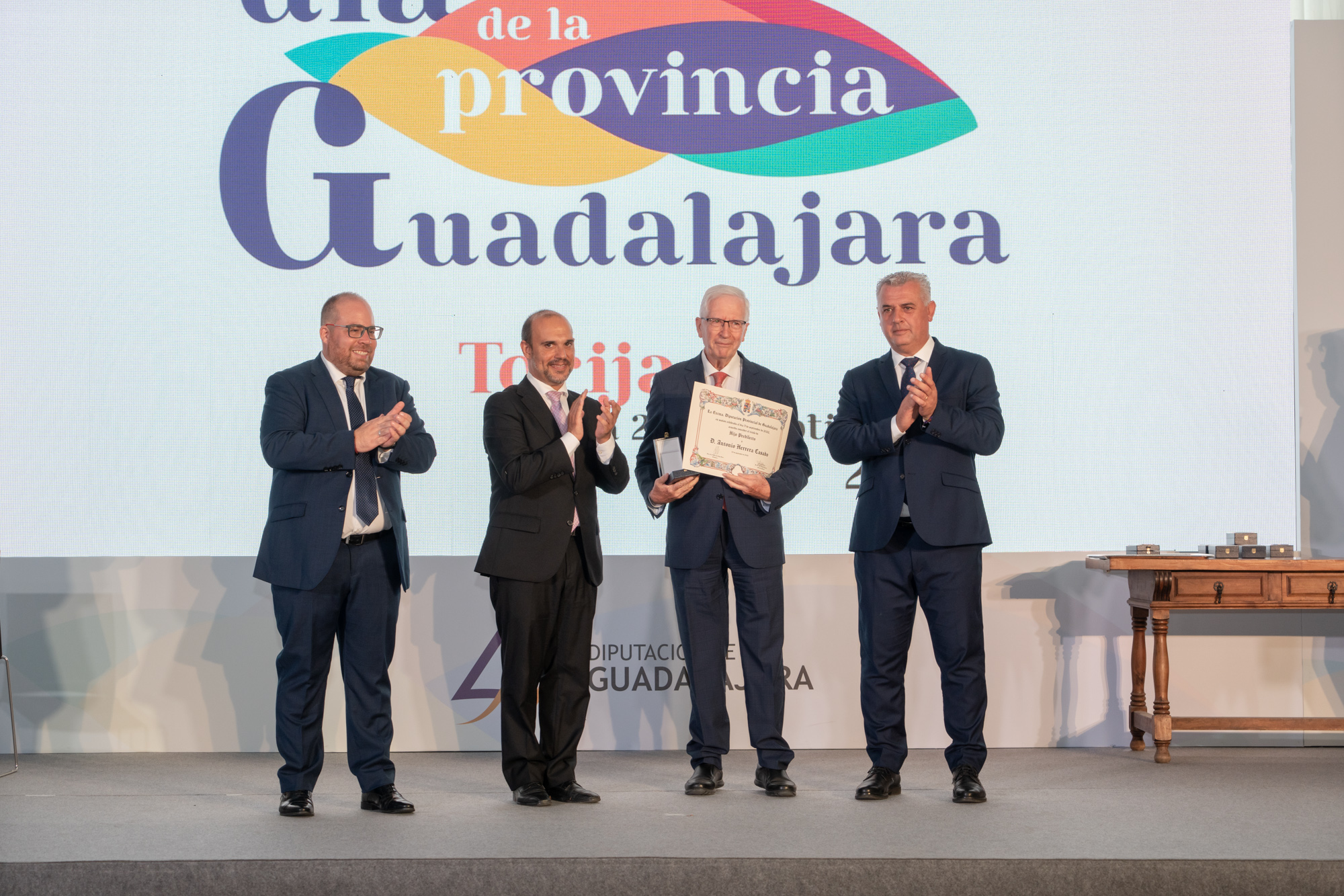 El Día de la Provincia de Guadalajara, organizado por la Diputación en la villa de Torija, arrancó con el acto institucional en el que se entregaron 27 distinciones honoríficas a personas, entidades y colectivos que con su trayectoria “engrandecen el nombre de Guadalajara y nos ayudan a expresar nuestro orgullo por ser de esta provincia”, tal como afirmó el presidente de la Institución Provincial, José Luis Vega.