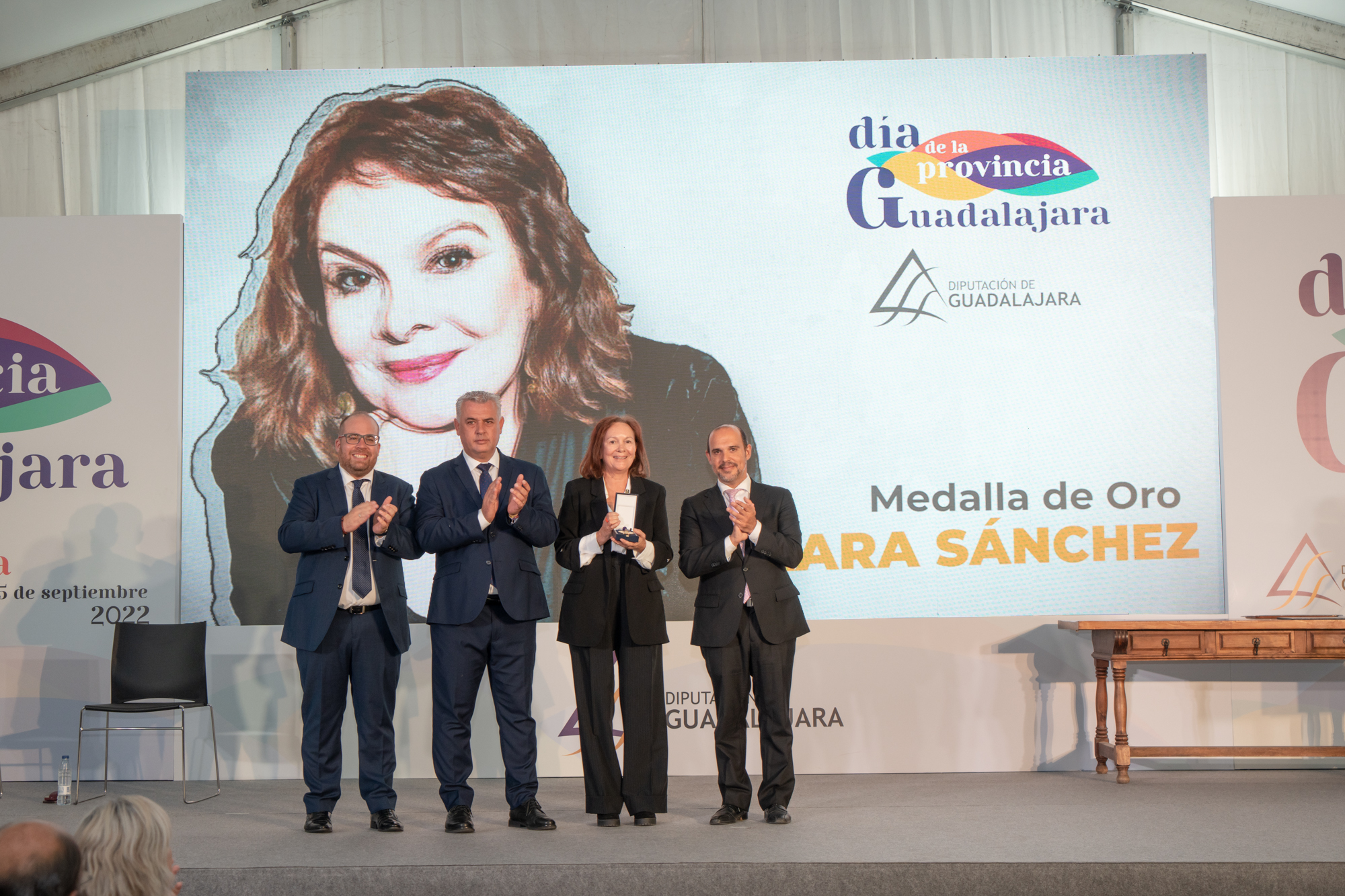 En nombre de todos los galardonados, la escritora Clara Sánchez agradeció a la Diputación “hacer posible esta tarde noche mágica”, que calificó de “muy reconfortante después de todo lo pasado, de haber estado confinados, atemorizados y solos”. Clara Sánchez aseguró que los campos de Guadalajara han influido en su narrativa, ya que “esta es una tierra muy inspiradora” y “la gente de Guadalajara somos amigables, acogedores y sentimentales”.