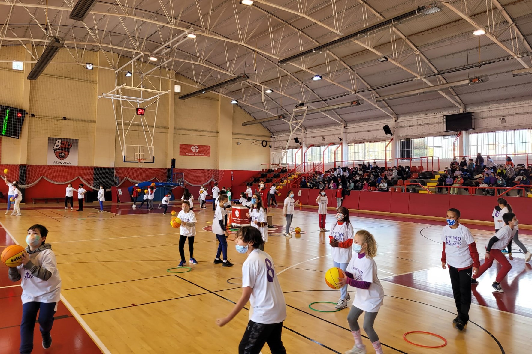 En Azuqueca de Henares, durante la mañana de este 8 de marzo se ha celebrado en el polideportivo municipal La Paz la actividad ‘Canastas por la igualdad: el deporte no tiene género’, organizada por el Ayuntamiento de Azuqueca y dirigida al alumnado de 5º y 6º para reivindicar el deporte igualitario. Como objetivo simbólico, se había establecido que las 717 niñas y niños participantes sumaran 1.975 canastas, como recuerdo del año en el que la ONU declaró el 8 de marzo como Día Internacional de las Mujeres. Finalmente, se han sumado 2.188 canastas. Durante el acto, el alcalde, José Luis Blanco, acompañado de varios miembros de la Corporación, de trabajadores del Centro de la Mujer y de responsables de Policía Local y Protección Civil ha leído el Manifiesto del 8 de Marzo. A las 9 de la mañana, se ha desplegado en el balcón del Ayuntamiento la pancarta del Día Internacional de las Mujeres.