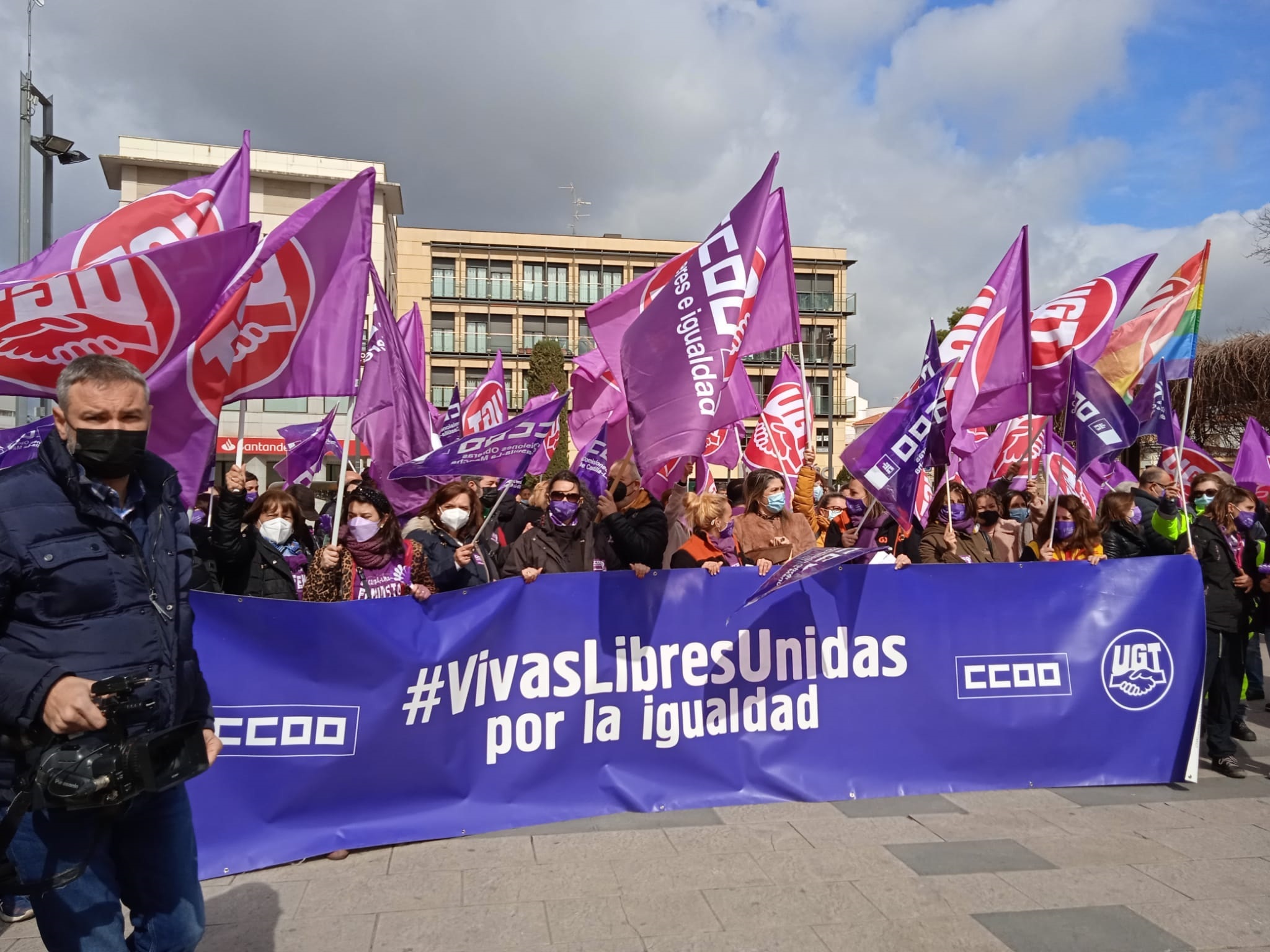 CCOO se ha manifestado también, junto con UGT, en la plaza de Santo Domingo. La secretaria de Mujeres e Igualdad, Teresa Sánchez, ha afirmado que «hoy 8 de marzo es un día de lucha por la igualdad, la cual se tiene que ver reflejada a través de la mejora de las condiciones laborales de las mujeres que sufren mayores tasas de temporalidad, sufren mayor precariedad y tienen peores salarios».