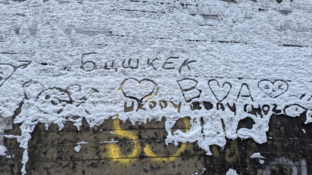 Más a mano y de un modo inesperado, casi al lado del trampolín donde los saltadores aspiran a volar desde el cielo hasta la tierra, encuentras en una pared la metáfora de este tiempo. O de todos los tiempos: mensajes escritos en la nieve helada.