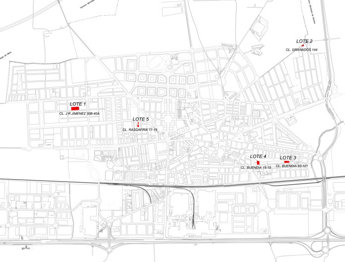 Las 23 parcelas se dividen en los siguientes cinco lotes: 10 parcelas en la calle Juan Ramón Jiménez, números 30-B a 40-A; 1 parcela en la calle Granados, número 144; 5 parcelas en la calle Buendía, números 93 a 101; 4 parcelas en la calle Buendía, números 15 a 19 y, por último, 3 parcelas en la calle Rascafría, números 17, 18 y 19.