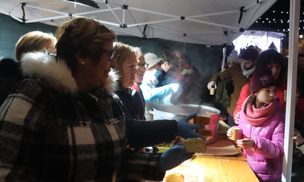 Culminado el acto, Sus Majestades estuvieron un buen rato recibiendo la visita de niños y niñas en el vestíbulo del Ayuntamiento, al tiempo que, en el exterior de la plaza, la Asociación de Mujeres La Campiña realizaba su generoso y tradicional reparto de chocolate caliente y roscón de Reyes, muy celebrado por el público asistente.