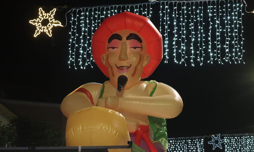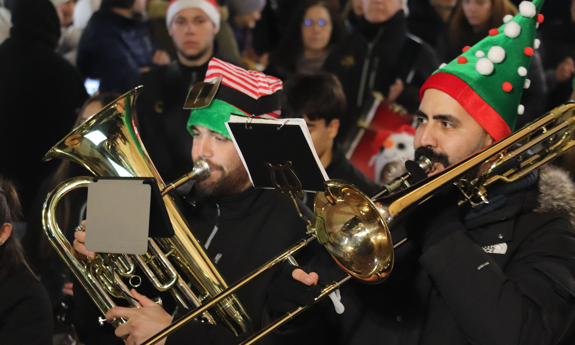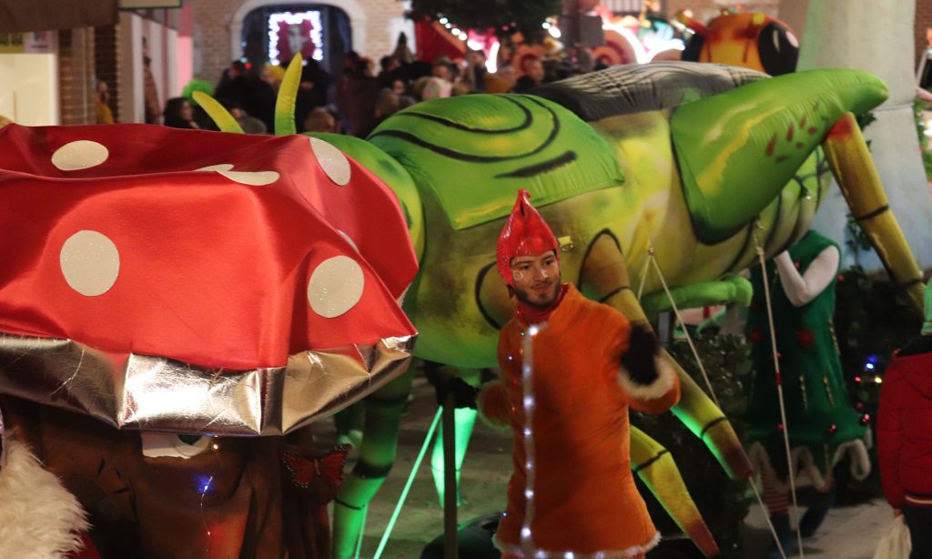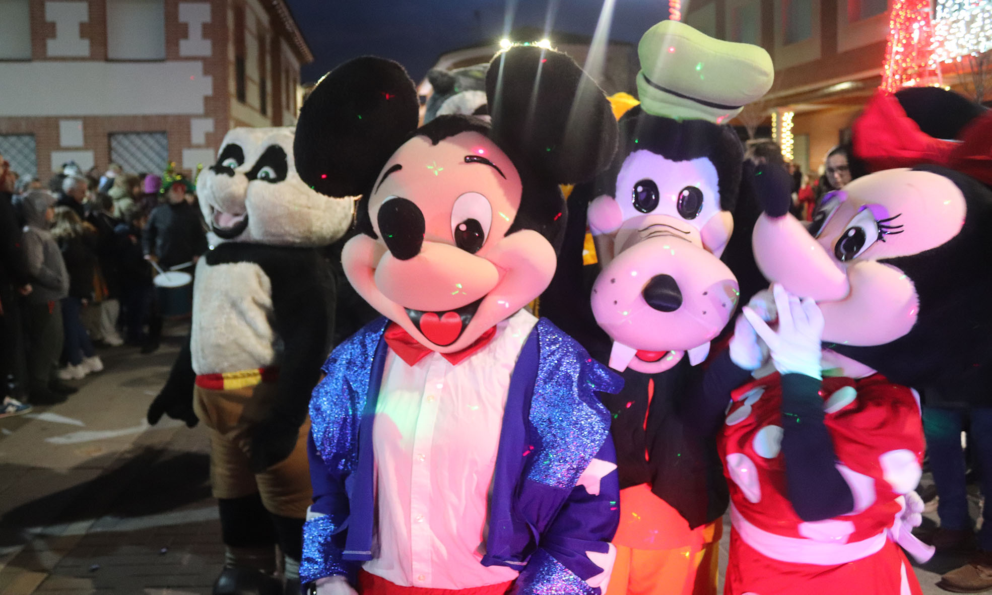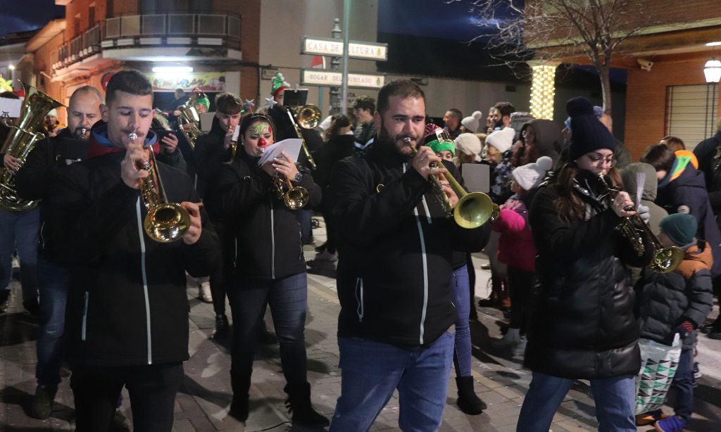 Una comparsa de muñecos infantiles de dibujos animados, seguida de una carroza ambientada en el personaje Mario Bross, y otra comparsa de vistosos personajes-cartas a los Reyes, daba paso al siguiente grupo musical: la tradicional banda de clarines y trompetas, que no paró de tocar villancicos por todo el recorrido.