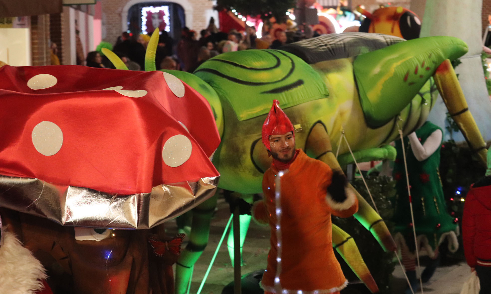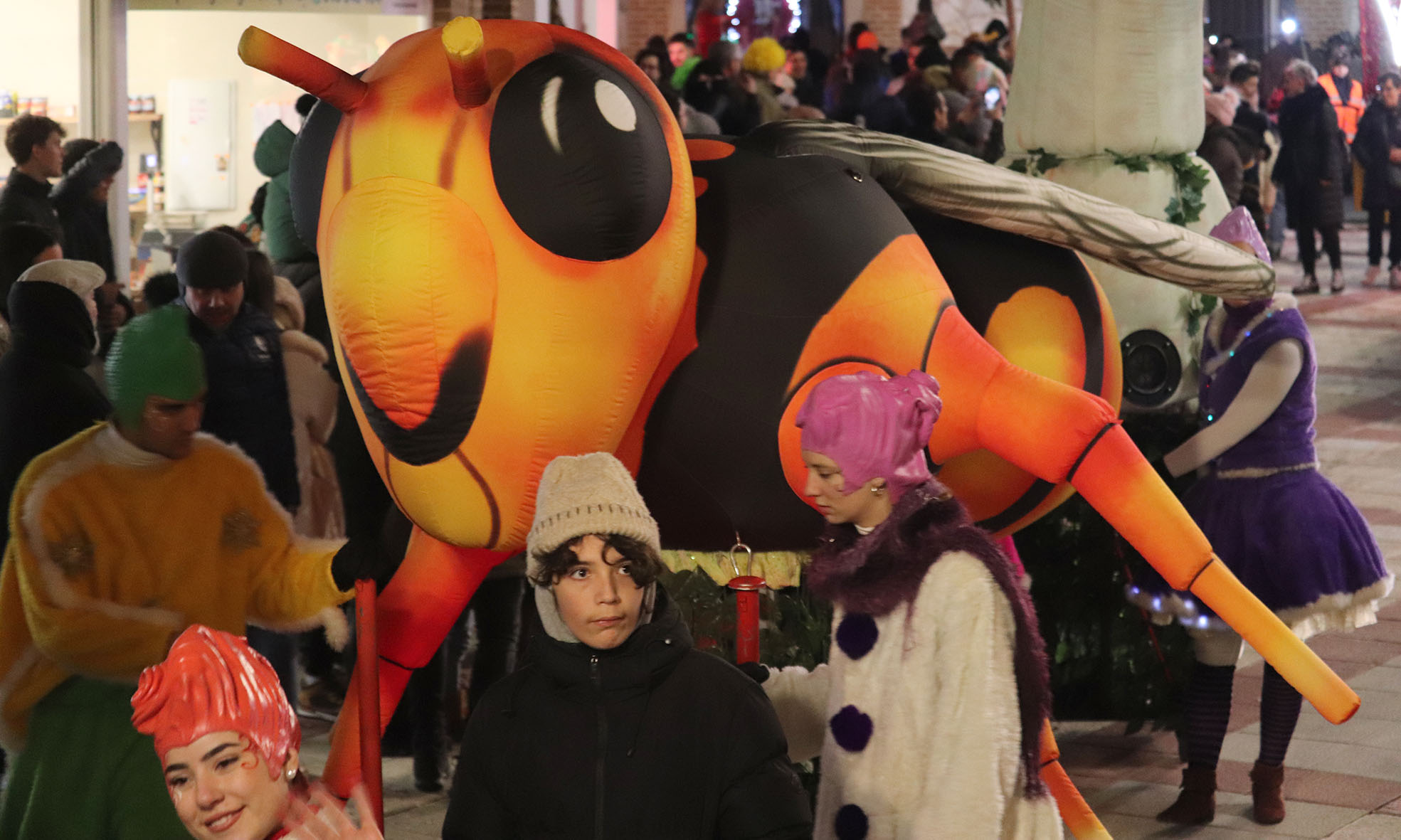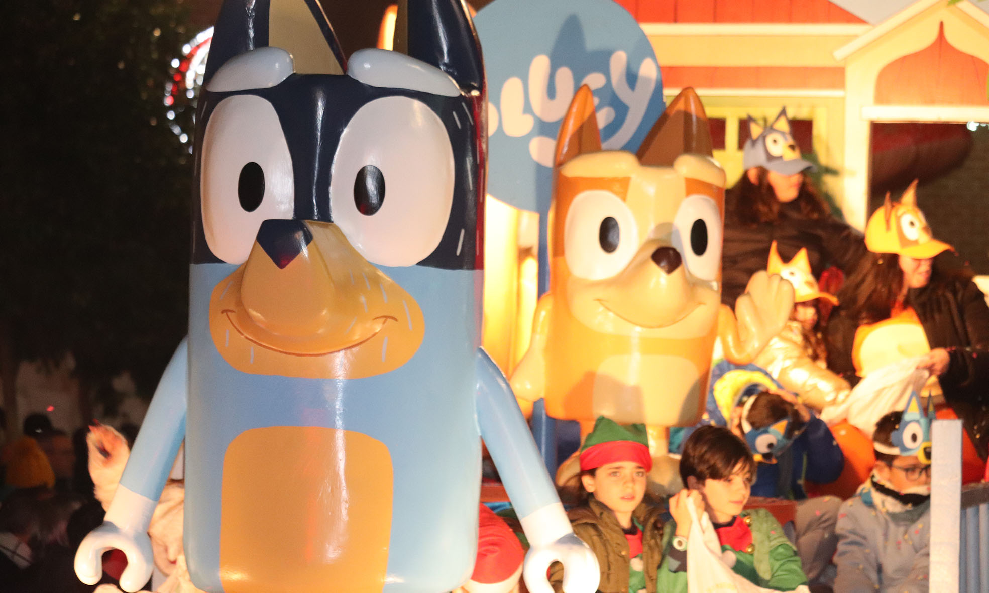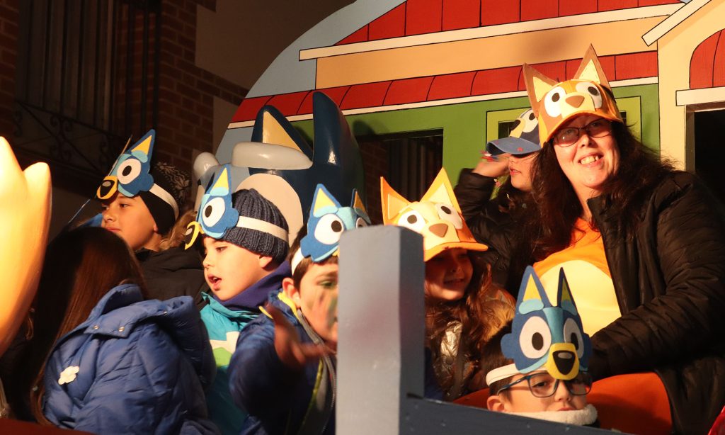 Tras la banda se podía ver otra carroza infantil, esta ambientada en el personaje «Bluey», y detrás un precioso pasacalles sobre un bosque de sueños, con árboles mágicos, duendes, malabaristas o zancudos, que daban paso a la primera carroza, la de Melchor.