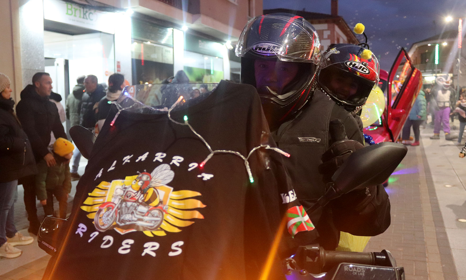 Abría la cabalgata una colección de una veintena de motocicletas, con pilotos especialmente vestidos para la ocasión, a las que seguía un coche tuneado. Tras esta parte «motorizada», el primer ritmo de la noche lo ponía la «BatuCaba», batucada de la Escuela Municipal de Música de Cabanillas, que dirigida por Alvar Grijelmo, ponía al público en movimiento para entrar en calor.