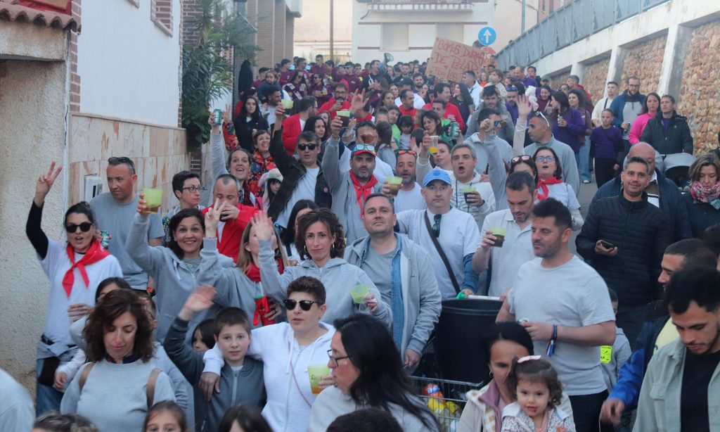 La cita comenzó con un homenaje a la joven cabanillera María Herranz, fallecida el pasado 17 de abril. Los componentes de la peña Kaldolanos (a la que pertenece su familia) subieron al balcón consistorial. Tras un minuto de silencio de los centenares de peñistas congregados en la Plaza del Pueblo, los Kaldolanos soltaron al cielo decenas de globos de helio con el nombre de María, mientras que las charangas interpretaban “Tenía tanto que darte”, canción de Nena Daconte que le gustaba especialmente a la recordada joven.