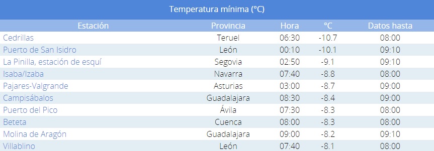 Molina de Aragón se ha visto superada esta vez por Campisábalos, que con unos gélidos -8,4 ºC se ha encaramado al sexto puesto en el ranking de las temperaturas más bajas de España este viernes, 12 de enero de 2024.