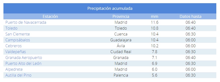 El de Campisábalos es uno de los cinco observatorios que habían acumulado durante la madrugada más de 10 litros por metros cuadrado, mientras que en la capital se rondaban los 3 a pesar de que muchos se han levantado hacia las 4 de la madrugada al comprobar la contundencia con la que empezaba a caer la tormenta.