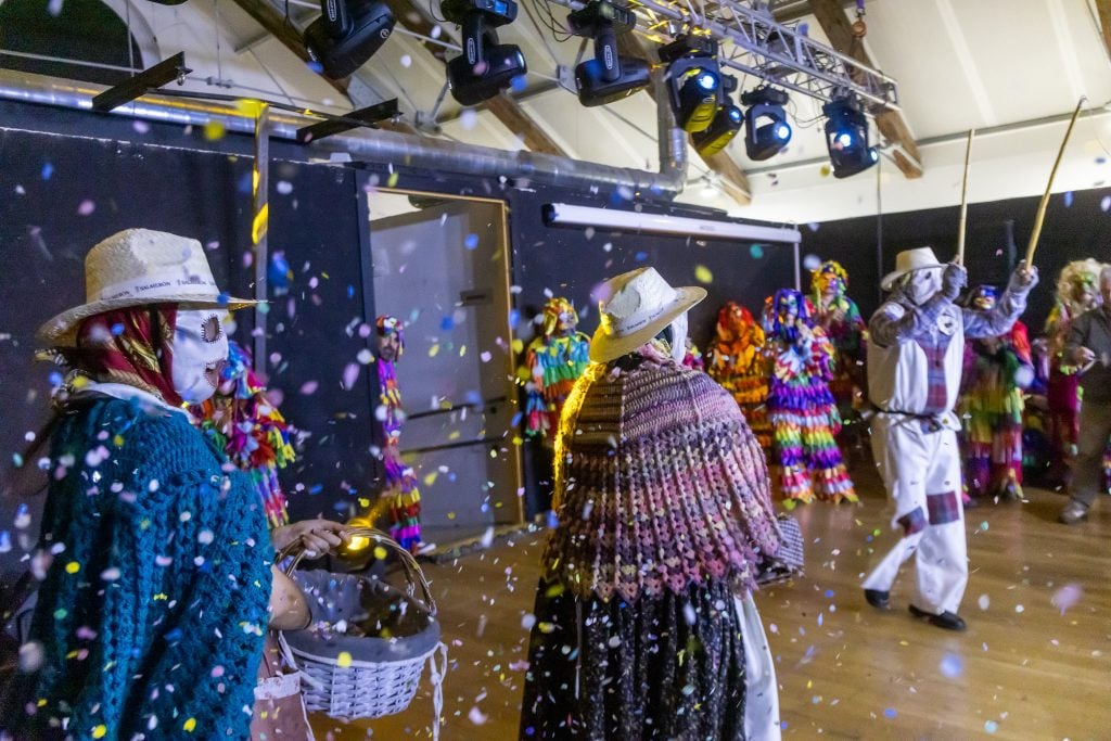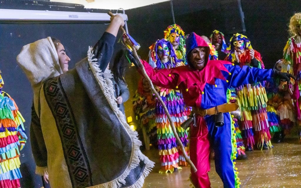 Tras la intervención del pregonero, el colectivo Mascarones interpretó el tradicional aliguí, con su reconocible «con la mano no, con la boca sí», que llenó el Espacio Tyce de humor y complicidad popular. Además, un grupo de danzantes del Tenorio Mendocino representó su baile carnavalesco, reforzando el nexo entre el teatro clásico, la tradición y las celebraciones populares de la ciudad.