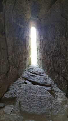 Después de pasar por el lugar donde aguarda el guarda (y no es un juego de palabras), recibidas las aceleradas explicaciones, pagados los 3 euros de la entrada y pertrechados de un folleto desplegable es el momento de adentrarnos entre las vetustas piedras.