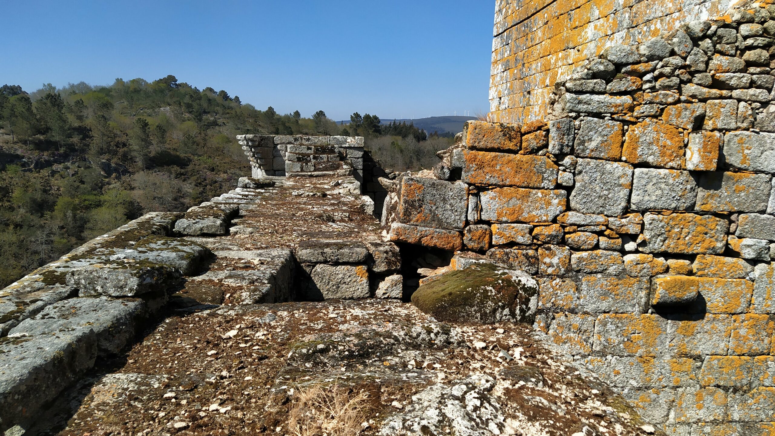 En los muros quedan los huecos que soportaron la viguería para el forjado de madera, desaparecido, que deja colgados en el aire los miradores en los que uno imagina a las damas del castillo, esperando entre melancolías y ensoñaciones sin Cunqueiro que las describa. Porque Pambre hoy es un paisaje que envuelve un castillo del mismo modo que en su día fue un símbolo de poder sobre el vasallo y sobre la naturaleza, sustentos ambos de este reino sin reyes en el interior de Galicia.