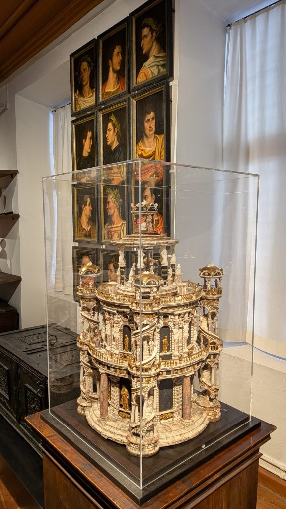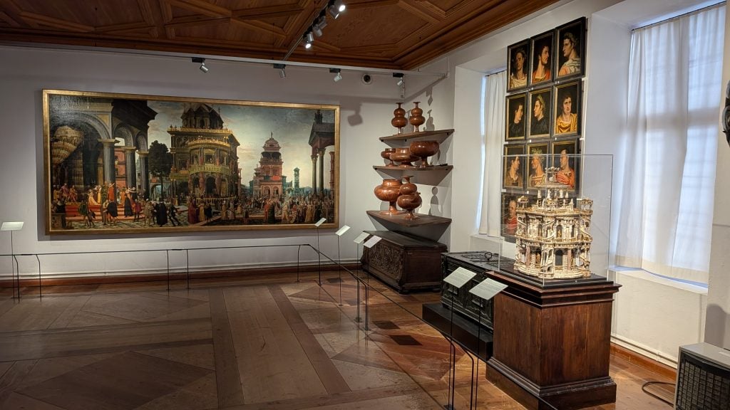 No está todo lo que llegó a tener en el siglo XVI, pero es más que suficiente para provocarnos asombro cuando se recorren las salas de su Kunst und Wunderkammer, la célebre Cámara de Arte y Curiosidades, una de las primeras de Europa y, a día de hoy, quizá la más sorprendente que quepa imaginar.