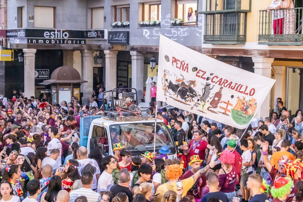 Concluido el pregón llegó el estallido del chupinazo dio paso al tradicional Desfile de Peñas y Charangas, que recorrió la calle Mayor, la plaza de Santo Domingo y la calle Virgen del Amparo, hasta su cruce con la calle Toledo y la avenida de Castilla.