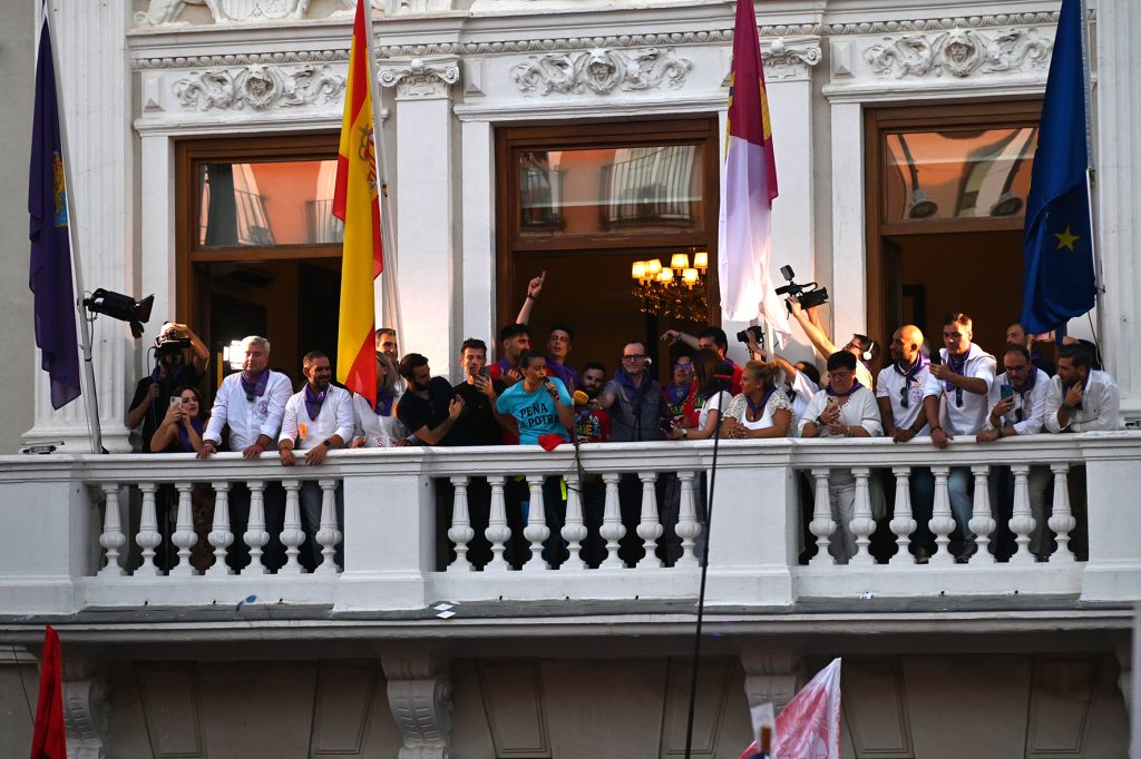 El balcón del Ayuntamiento recibió de un modo especial a la Peña “El Buey”, que celebra su 35 aniversario.