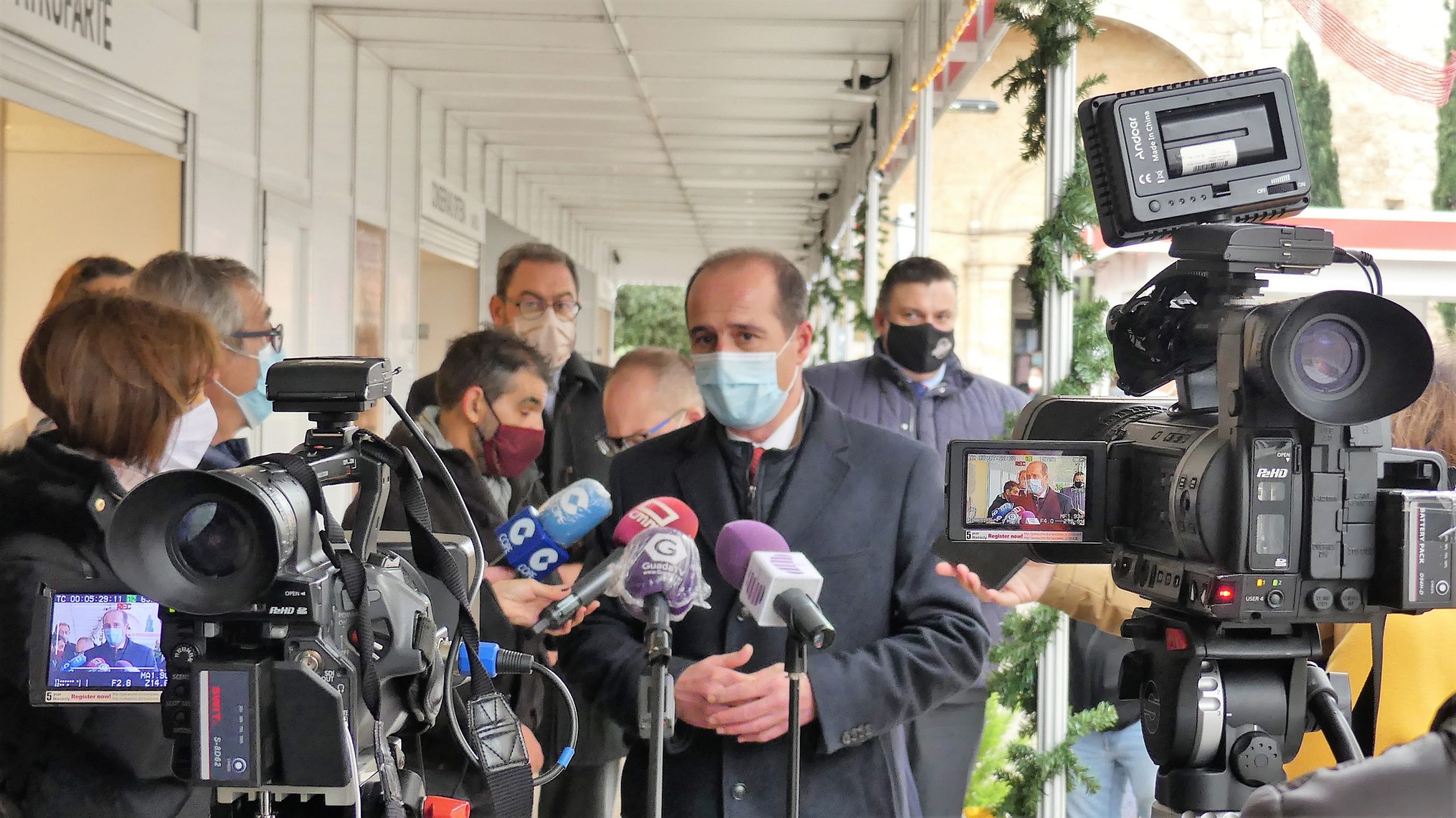 Rojo ha realizado este anuncio durante la inauguración, junto al presidente de la asociación Aida, Juan José García; el delegado de la Junta en Guadalajara, Eusebio Robles, y el vicepresidente primero de la Diputación, Rubén García, del segundo de los tres mercados navideños que habrá estas fiestas, en este caso de productos agroalimentarios, que tiene por escenario la Plaza de Santo Domingo.