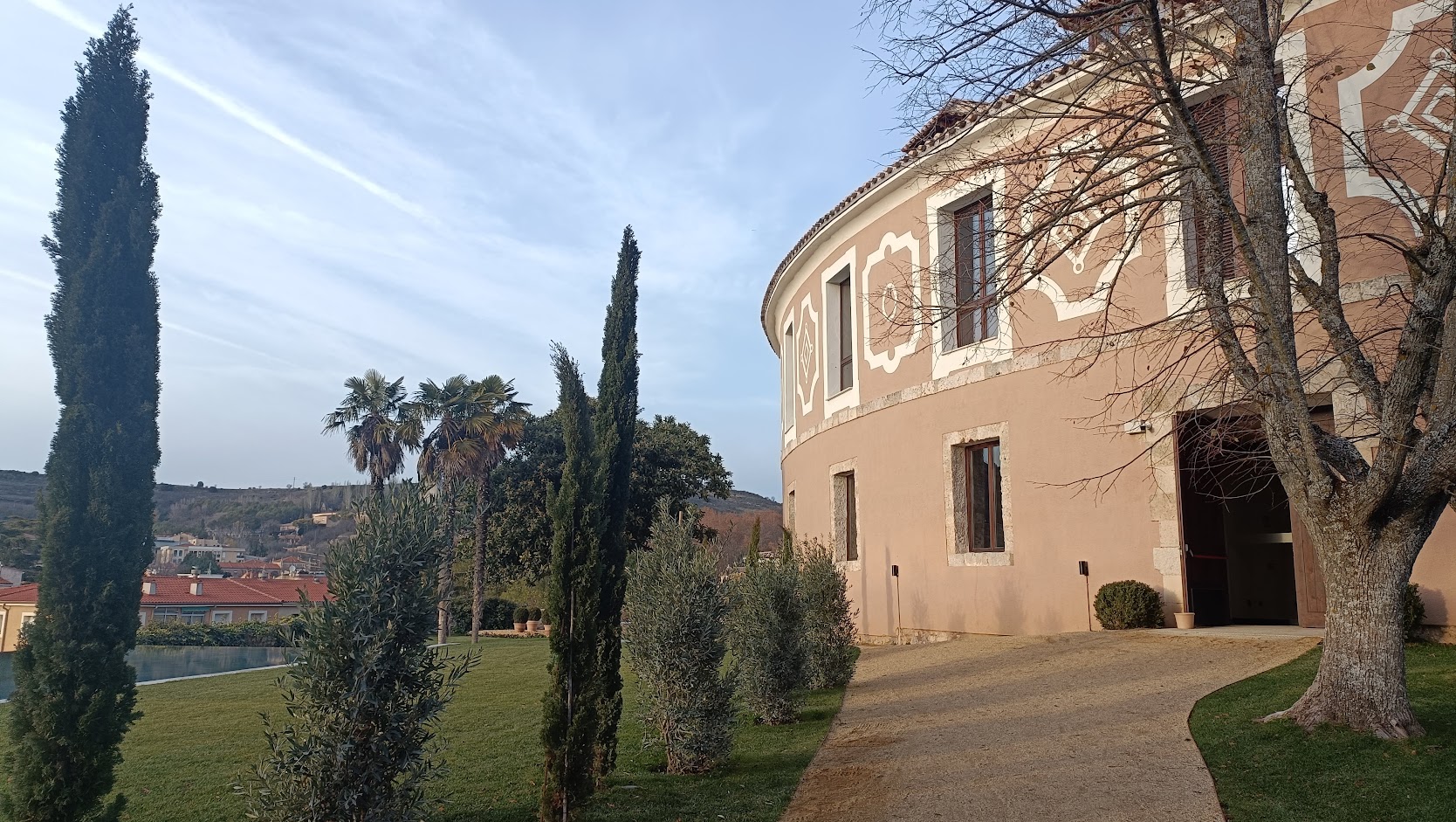 Mientras deambulas, miras y disfrutas del silencio terminas por darte cuenta de que sí que hay huéspedes: los atisbas por las cristaleras de la primera planta, andando por el círculo perfecto del edificio principal, camino del spa bajo sus albornoces blancos. Esos mismos que un quinteto de señoras promocionó, de aquella manera, días atrás.
