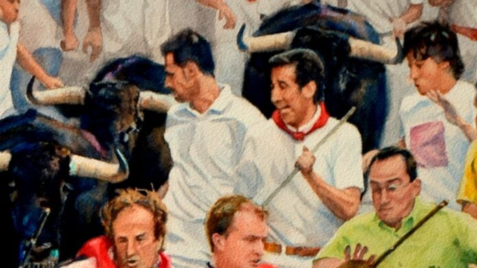 En palabras del propio autor “el cartel pretende captar la fuerza del encierro urbano, justo antes de su salida al campo, y al mismo tiempo constituir un homenaje a todos los corredores amantes del encierro de Brihuega que forman y han formado parte de él, teniendo en cuenta que los retratados son personas reales participantes habituales del encierro”. “Se trata de un cartel realizado a la acuarela, pintado el pasado año en pleno confinamiento, cuya composición se basa en la utilización del zig-zag que crea la carrera de toros y mozos a lo largo de la calle”, añade.