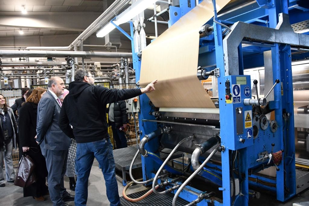 Acompañado del gerente de la empresa, Enrique Arconada; la delegada de la Junta en Guadalajara, Rosa María García; el alcalde de Marchamalo, Rafael Esteban; y el comisionado del Reto Demográfico, Jesús Alique, el vicepresidente ha recorrido las instalaciones de esta empresa, dedicada a la fabricación y comercialización de papel engomado, papel de embalaje y otros productos de papel.