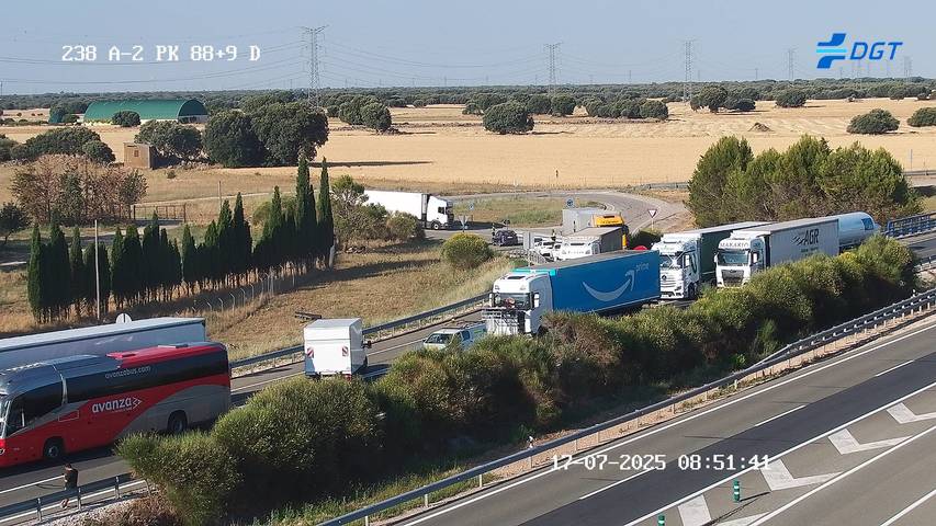 La salida de vía de un camión de gran tonelaje en la A-2 a la altura de la localidad guadalajareña de Gajanejos cortaba a primeras horas de la mañana del jueves el tráfico en la autovía, en sentido Zaragoza.