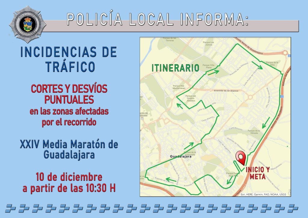 Aun así, habrá cortes y desvíos puntuales al tráfico rodado en las zonas afectadas por el recorrido que saldrá de la avenida Ricardo Velázquez Bosco (zona en puerta de entrada Parking Piscina), pasando por avenida Juan Pablo II hasta Glorieta y vuelta avenida Ricardo Velázquez; Santa María Micaela; avenida de Castilla; calle Toledo; calle Doctor Layna Serrano, y plaza Salvador Dalí. Proseguirá por glorieta Víctimas del Terrorismo; paseo Doctor Fernández Iparraguirre (lado derecho); plaza de Santo Domingo; calle la Carrera; plaza de Bejanque; avenida de Barcelona; carretera de Hita; calle Albacete; avenida Beleña; avenida del Vado; bulevar de Entrepeñas; calle Victoria Kent; bulevar de Clara Campoamor; calle Concepción Arenal; avenida Del Sol; rotonda de los Valles y avenida