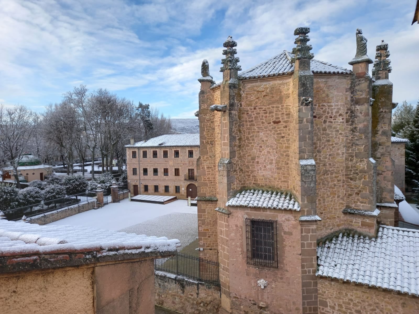 Mientras que en la capital no se esperaba nieve de aquí a Reyes, Sigüenza sí podría aparecer cubierta el primer día de 2021, e incluso antes Molina de Aragón alertábamos este jueves en nuestras previsiones, que se han cumplido, incluyo para muchas otras localidades, como Brihuega, como bien ilustra esta fotografía.