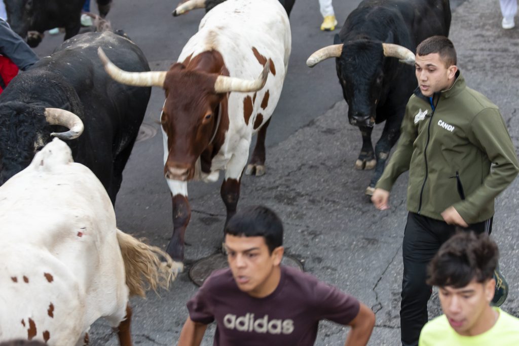 A pesar de quedarse descolgados los seis toros en la Cuesta del Reloj, que es mucha cuesta, los pastores lograron agrupar la manada, sin que después se dispersaran excesivamente aunque nunca fueran compactos.