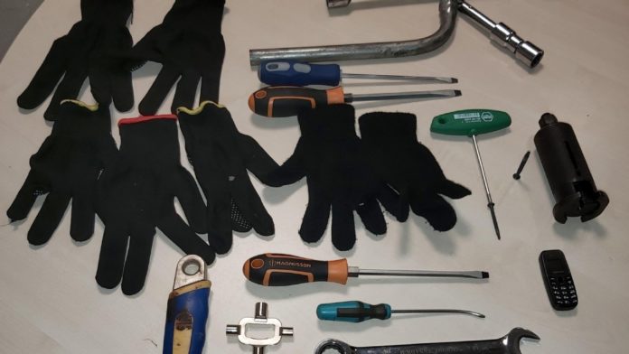 Los agentes les cortaron el paso, cruzando el coche patrulla en medio de la calle para evitar su huída. Acto seguido, procedieron a la identificación de sus ocupantes, que resultaron ser tres hombres y una mujer. En el vehículo llevaban 4 pares de guantes, una sierra de arco, varias llaves y destornilladores, un extractor de bombines y una herramienta de cerrajería.