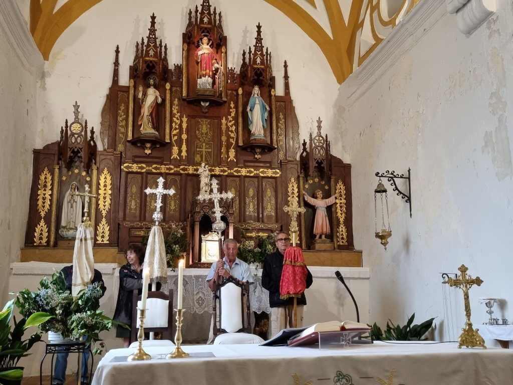 La consejera de Igualdad, Sara Simón, y el delegado del Gobierno de Castilla-La Mancha en Guadalajara, José Luis Escudero, han participado este 2 de septiembre en la romería del Santo Alto Rey. La lluvia ha obligado a llevar esta celebración a la iglesia de Bustares.