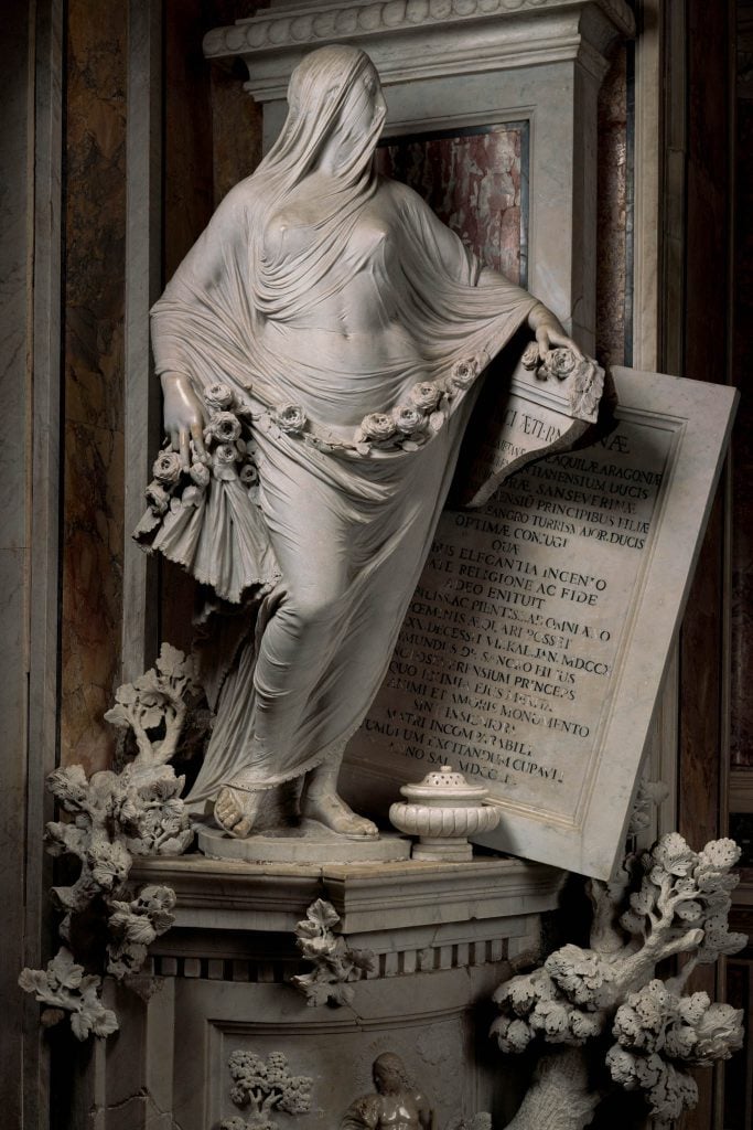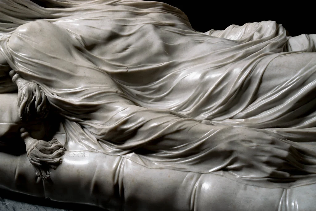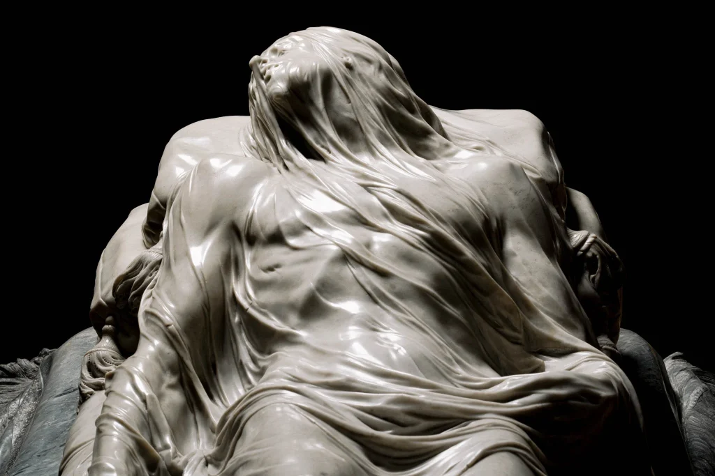 Se lleva los mayores honores el Cristo Velado, de Sanmartino. Es tanto el virtuosismo dedicado a desvelar lo apenas velado que, sin ánimo de llevar la contraria, a este que les escribe no le conmovió su contemplación. Antes al contrario, le incomodó ese sofisticado artificio hasta el extremo de no poder compartir la conmoción de los circundantes.