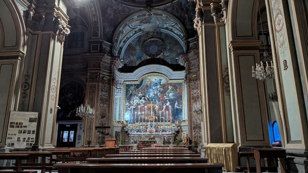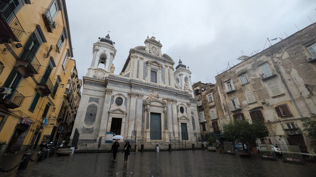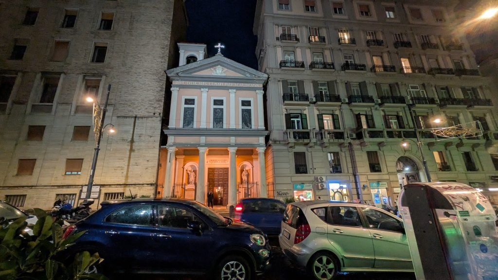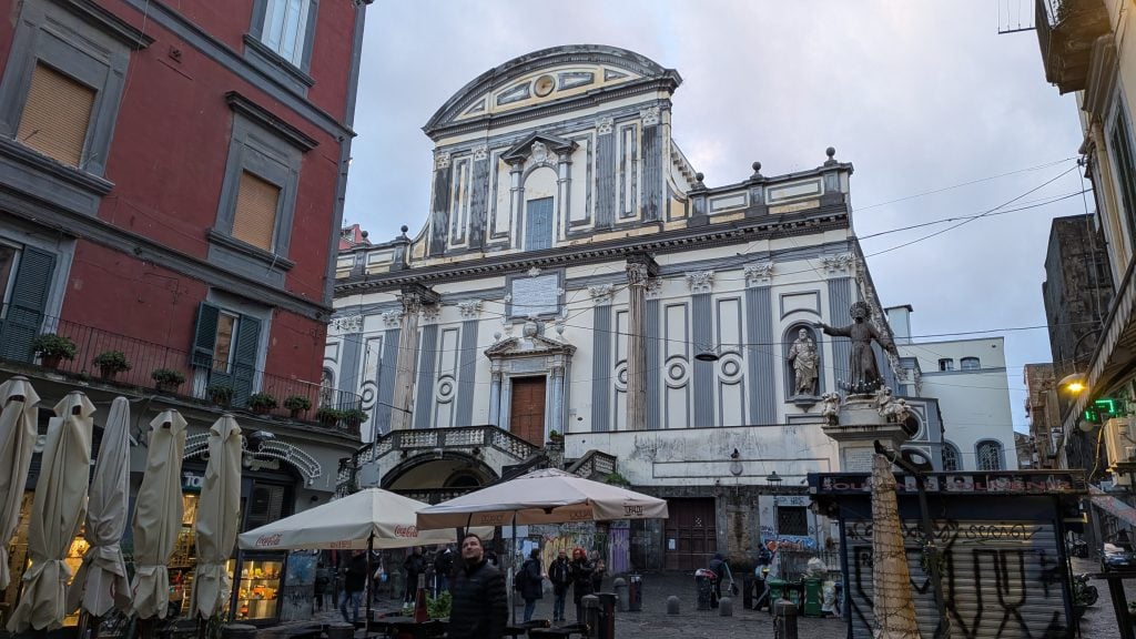 Para abundar en nuestra teoría no hay más que caminar por Vía Toledo, esquivar peatones y, si se está atento, entrar a la iglesia de San Nicolás. Muy probablemente nos encontremos solos pese a estar en uno de los puntos de mayor concentración humana de todo Nápoles.