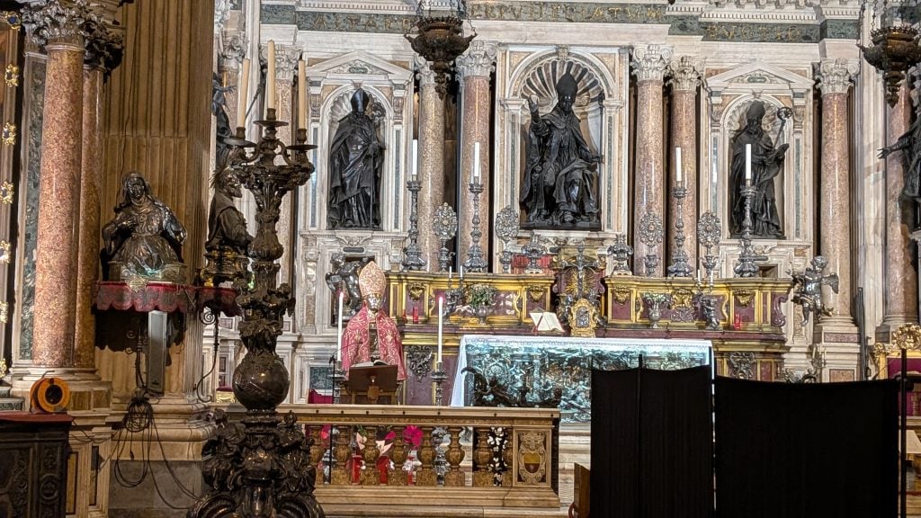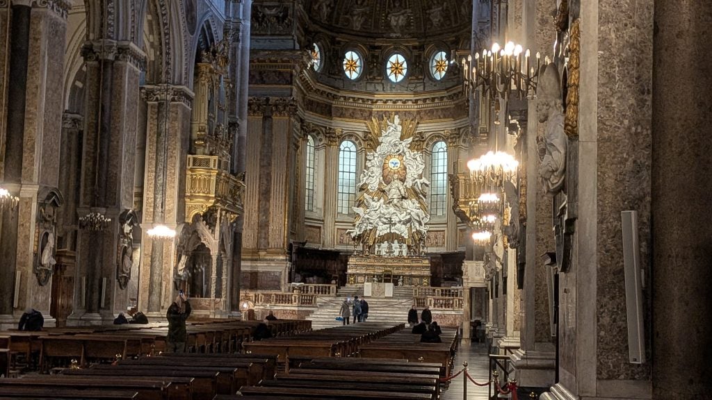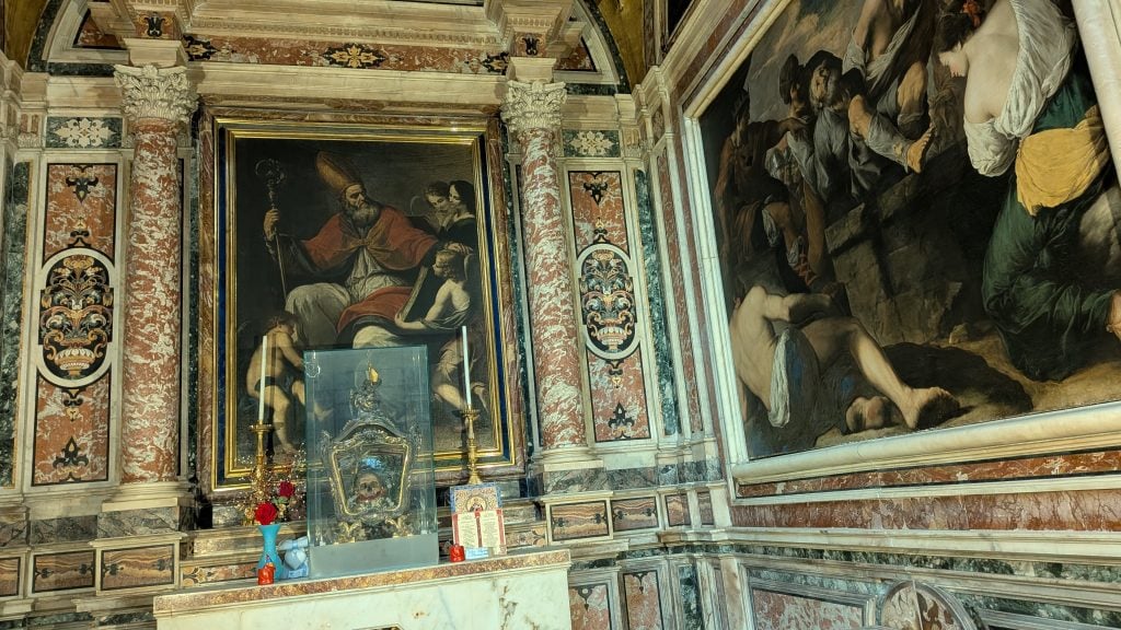 Al fondo, nos tutela San Genaro desde su efigie mientras repasamos los lujos y los frescos.