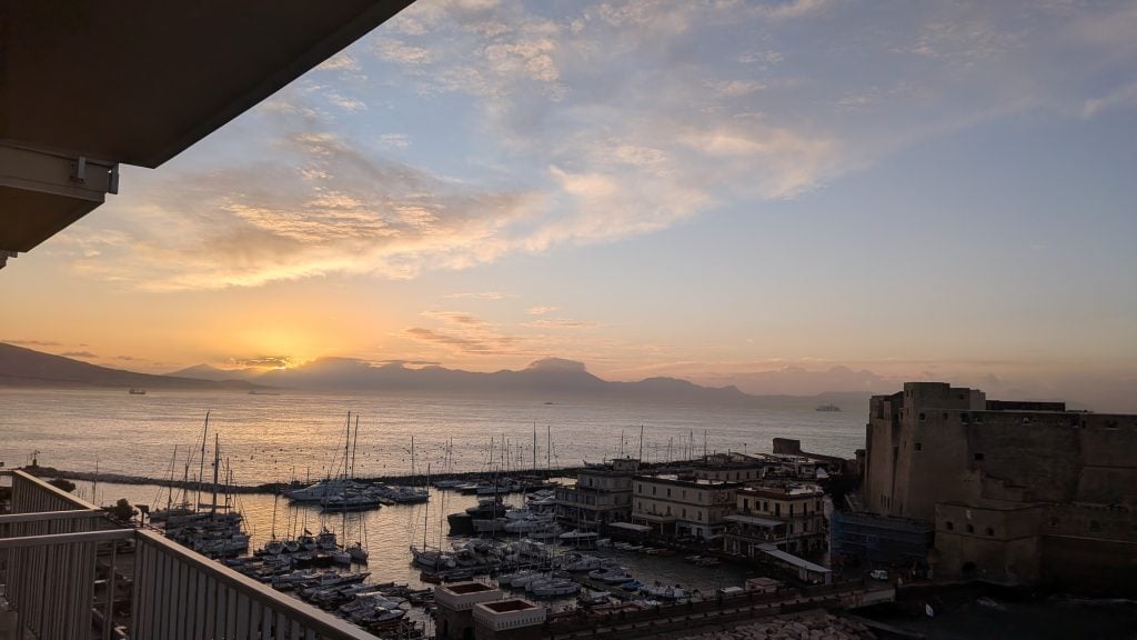 Pasear el Lungomare, desde el Castel dell’Ovo a Chiaia es arriesgarse a no saber con qué luz quedarte. Porque, precisamente, el cielo se emborracha con el agua del mar y da pie a una paleta de colores que facilita el trabajo del fotógrafo.