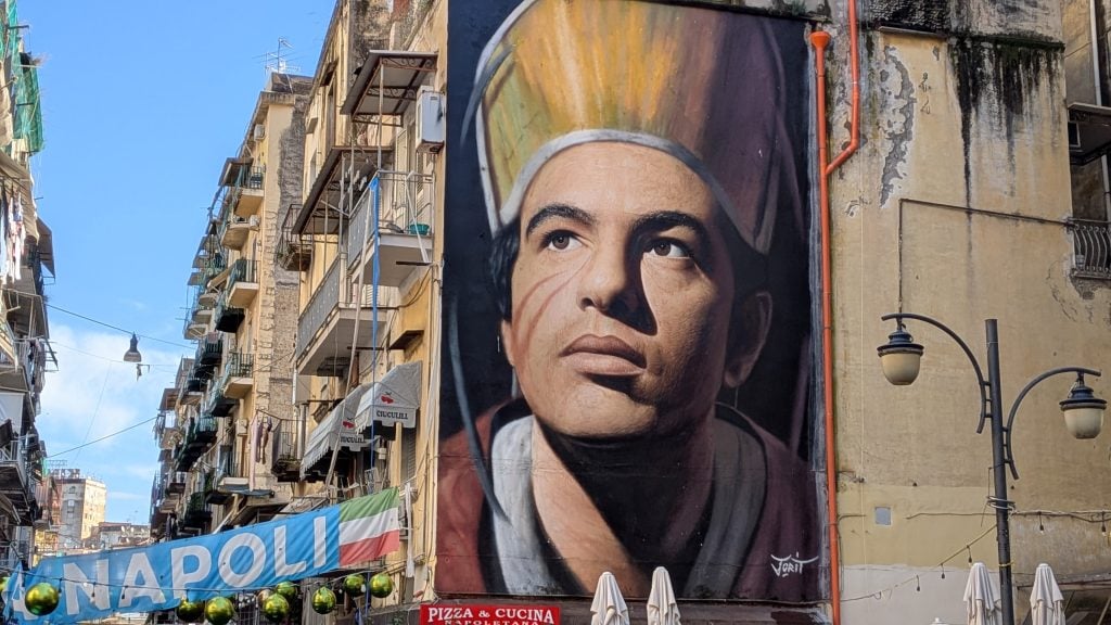 Sin ofender a Maradona, San Genaro también es Nápoles, compartiendo honores y murales callejeros.
