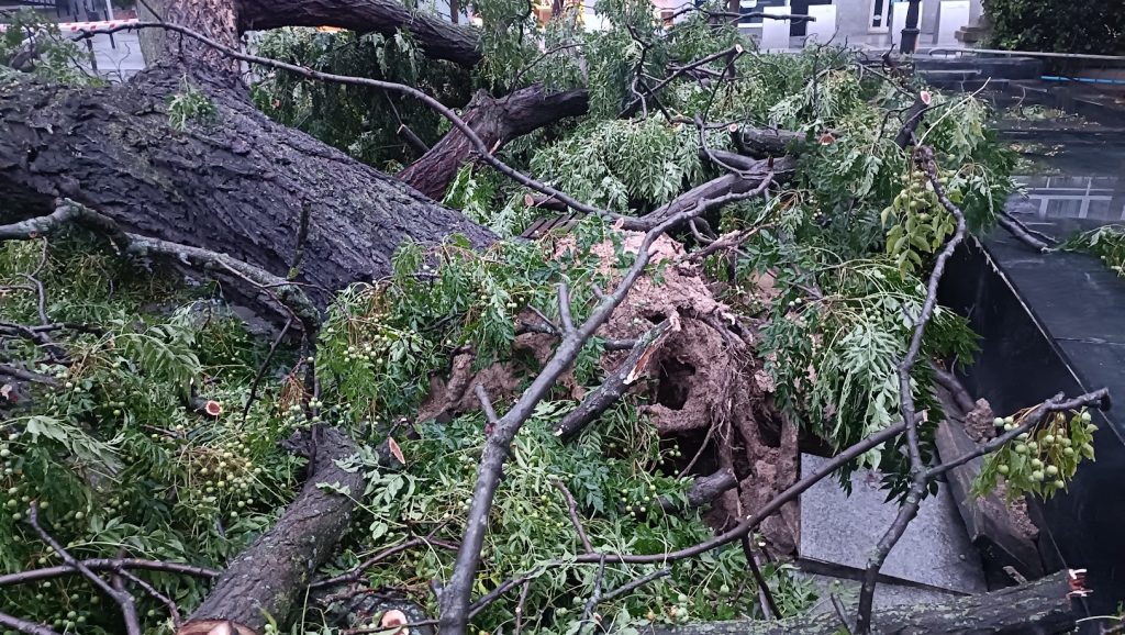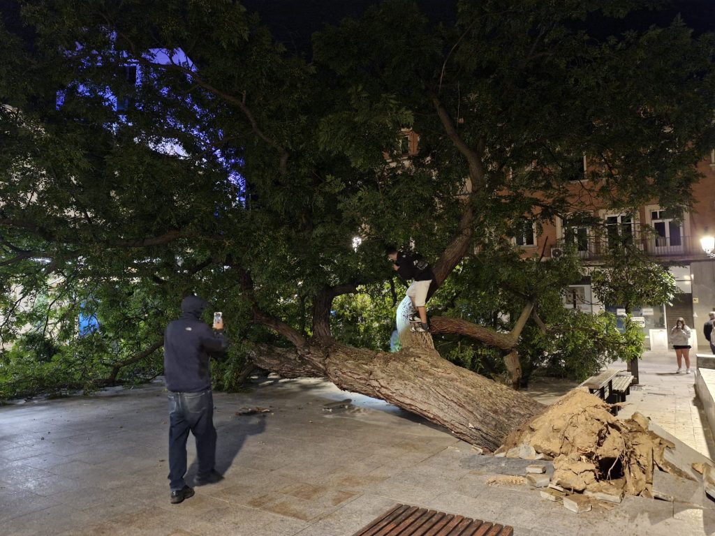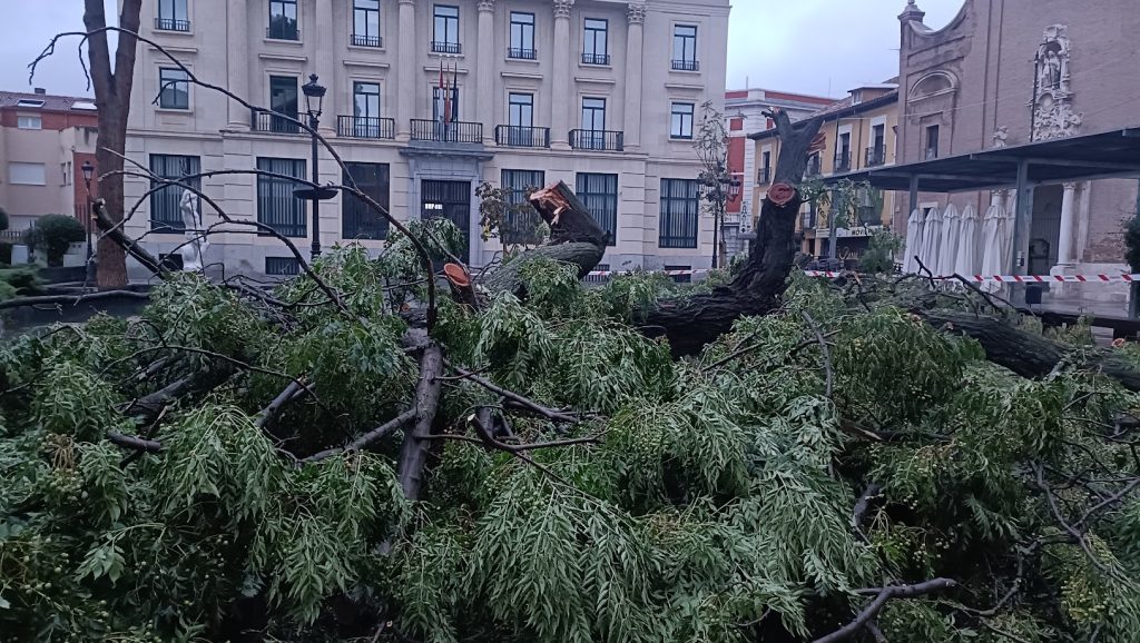 Minutos antes de las once de la noche, según han relatado testigos presenciales a LA CRÓNICA, uno de los árboles más singulares de Guadalajara, el de la plaza del Jardinillo (que no era una acacia sino un cinamomo) se precipitaba contra el suelo de forma inesperada.