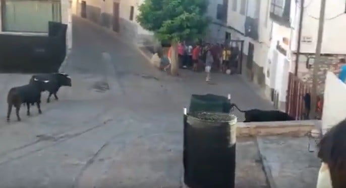 Accidentado resultó el encierro llevado a cabo en la tarde del sábado, 17 de agosto, por las calles de Pastrana. Como se puede observar en el vídeo que acompaña a estas lineas, en un momento determinado uno de los tres astados se acerca hasta el vallado que cerraba una de las calles transversales al recorrido. Con la testuz, topa contra los hierros y consigue traspasar limpiamente esa insuficiente protección, provocando el estupo general y varios heridos.