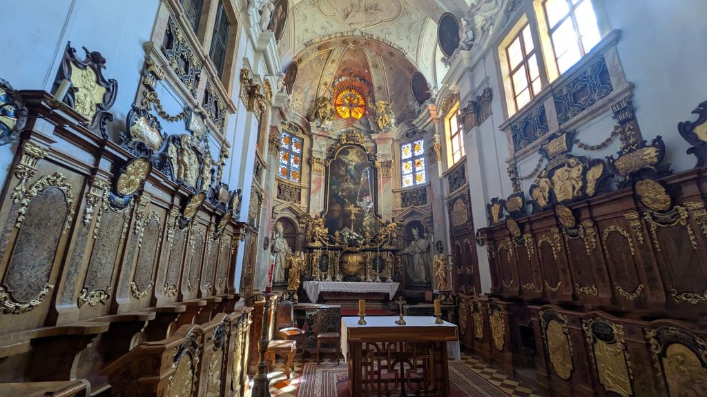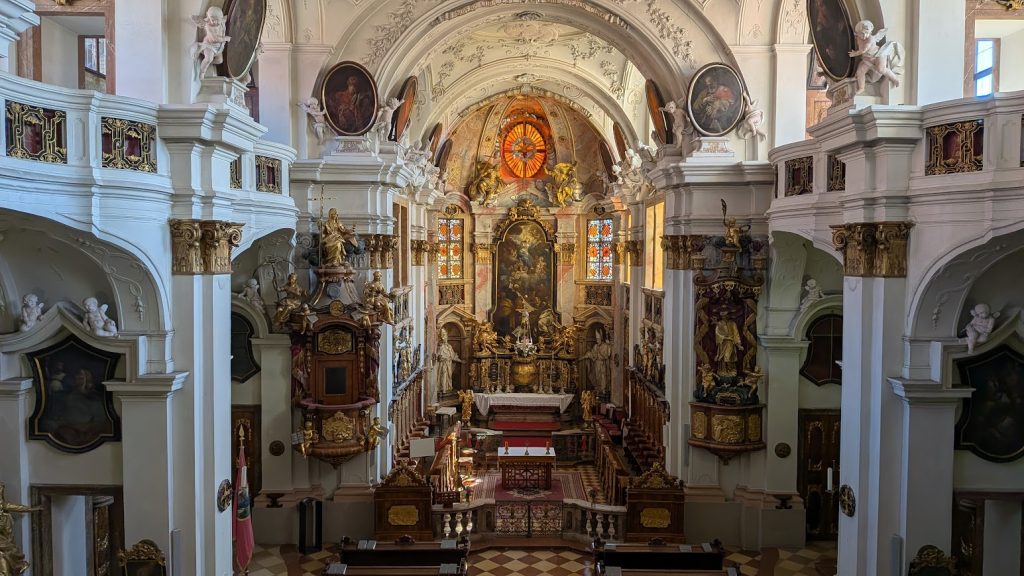 Teniendo en cuenta que todo empezó en 1372 con una pequeña capilla donada por una viuda reconozcamos que les cundió, y mucho, a los monjes agustinos que se asentaron a partir de aquello. En 1410 inició su andadura como abadía. El barroco tomaría asiento como hoy lo vemos con la reforma impulsada por Hieronymus Übelbacher en 1710. Fueron 30 años dirigiendo a artesanos y albañiles, pero la muerte le pilló sin acabar de quitar andamios.
