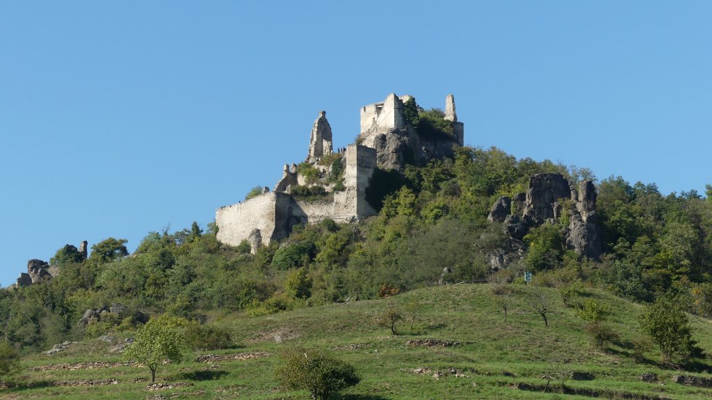 Dürnstein es una ciudad sin dobleces. Lo que tiene te lo enseña bien a las claras: la iglesia y la abadía abajo; las ruinas del castillo, arriba; en medio, un ramillete de callecitas de cuento entre casas floridas y hospedajes al servicio del viajero.