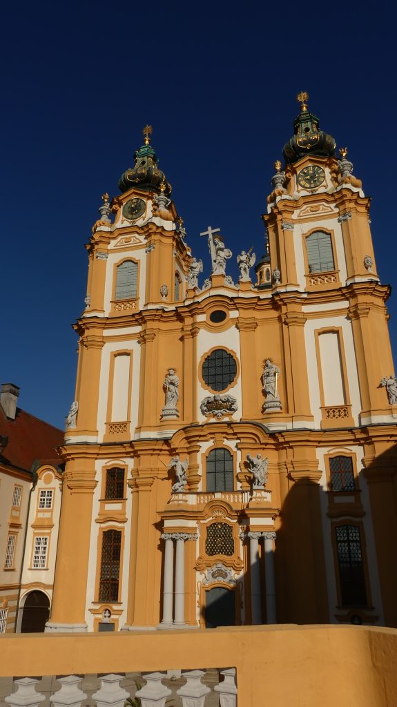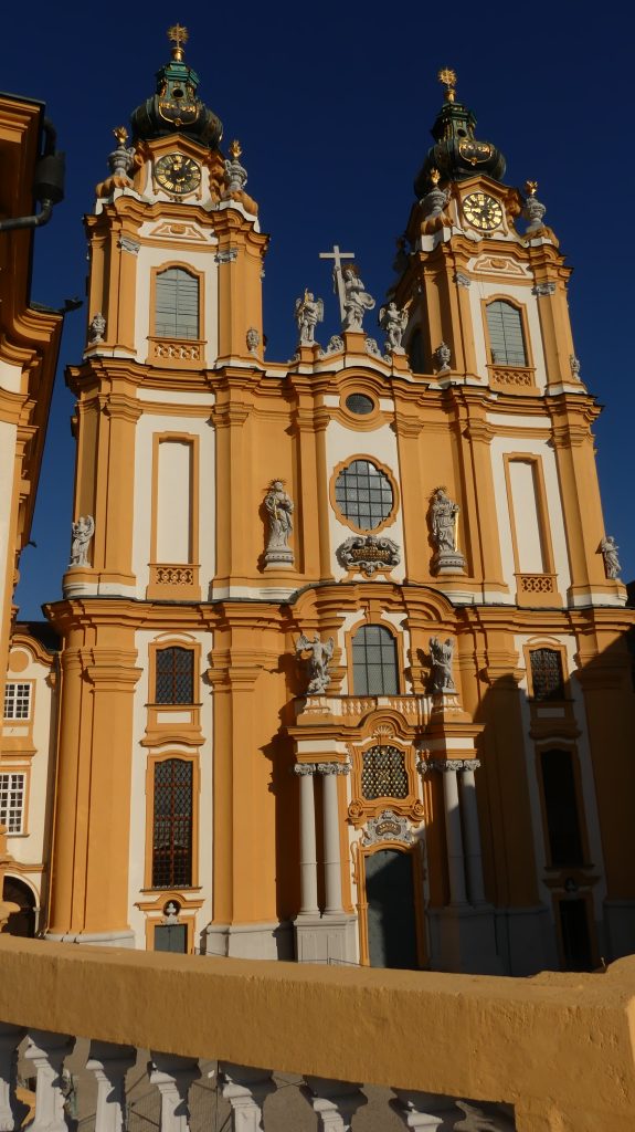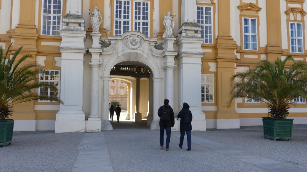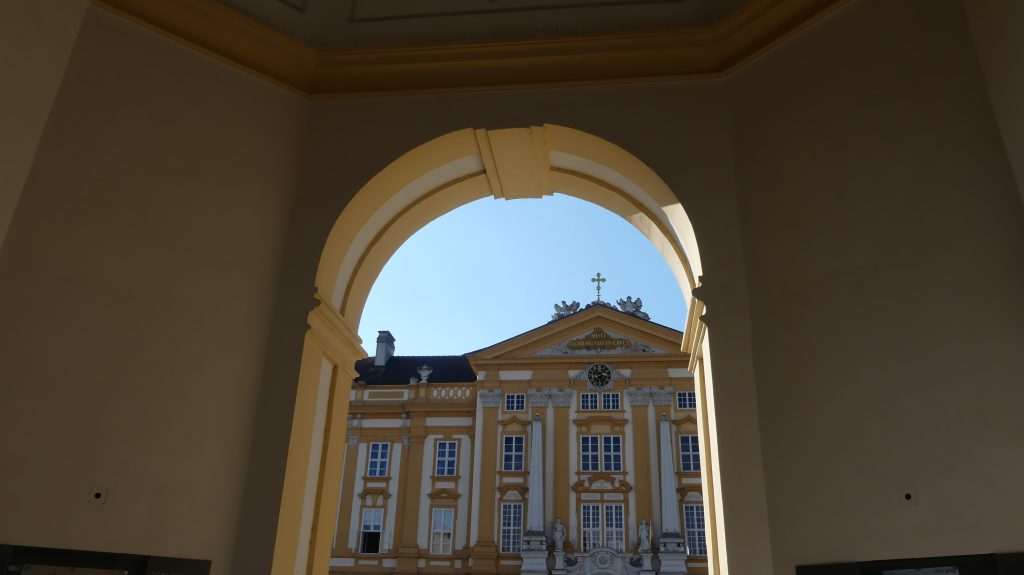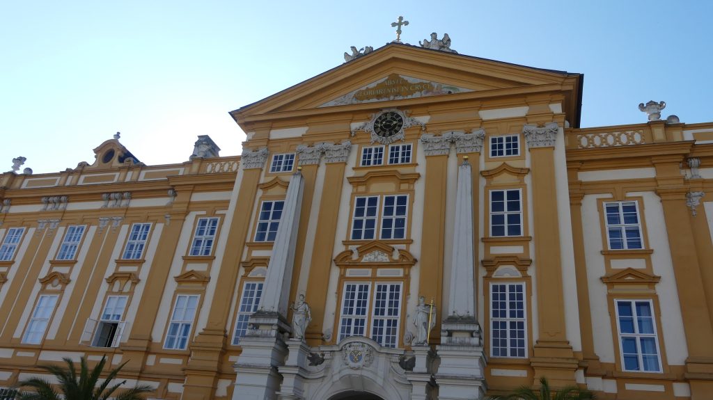 Eso sucede también en Melk, aún más acentuado el criterio por su carácter defensivo, nada disimulado por el barranco sobre el que se alza.
