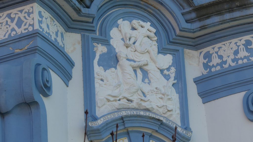 No es una elección casual: es este uno de los azules más bellos. El elegido para las fachadas fue logrado a partir del cristal de cobalto. Dentro, alguna madonna guarda todavía en sus ropajes el azul conseguido con lapislázuli, el más caro de entre los posibles de llevarse a la paleta del pintor, más incluso que los sobredorados.