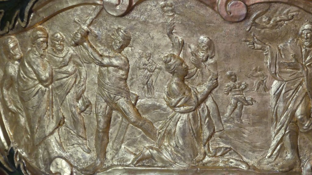 Estamos ante un insólito precursor del 3D, reforzada la perspectiva teatralmente hasta casi el vértigo mediante el recurso a sucesivos recortables. Llamémoslo así puesto que es lo que evoca el teatro sagrado, un capricho muy del gusto de aquella época que delante de nuestros ojos se mantiene lozano y sorprendente.