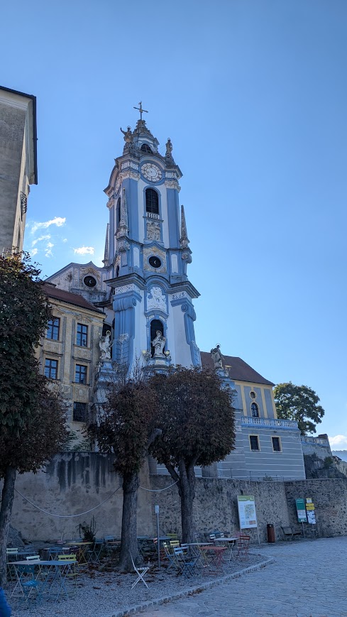 Nacemos para morir y, entre medias, vivimos. Es tan simple que solemos olvidarlo. En Dürnstein la muerte es una compañera fiel. Rigurosa, pero leal. Está en el sarcófago enjoyado que muestra al otro lado del cristal la osamenta glorificada de un mártir recuperado de las catacumbas romanas. Lo está, de nuevo, en alguna escultura aquí y allá.