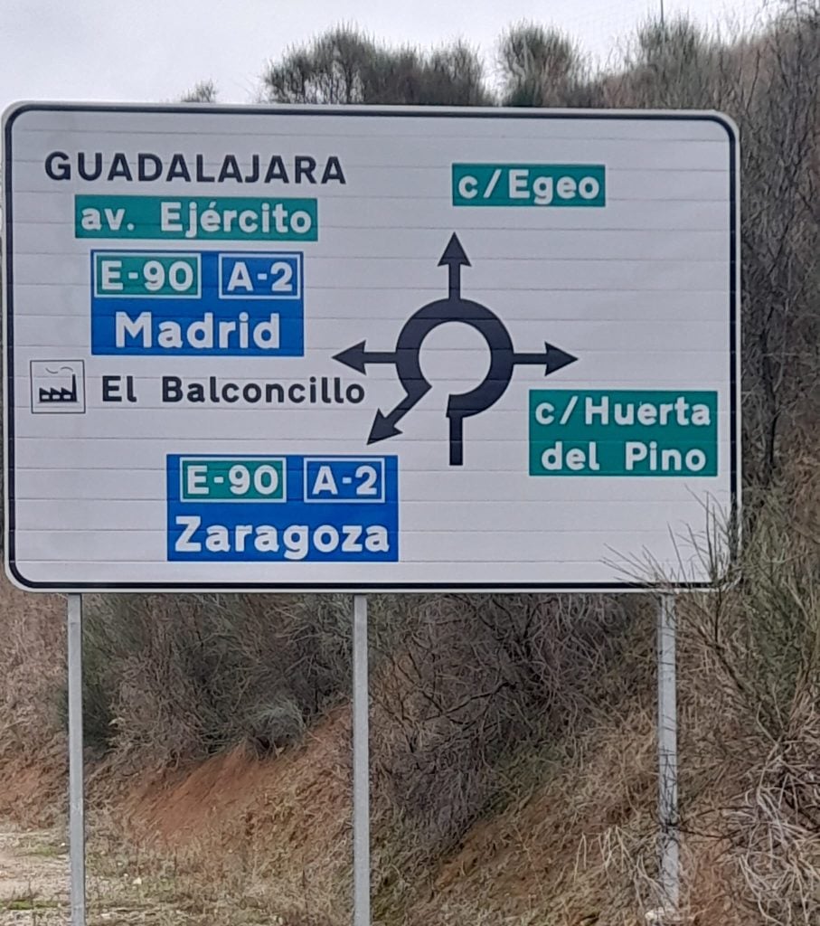 Pero lo más sorprendente será, al hilo de los tiempo, ir p’alante. No como otros a Soto del Real sino como indica el letrero que nos anuncia el Egeo en la mesetaria Guadalajara.