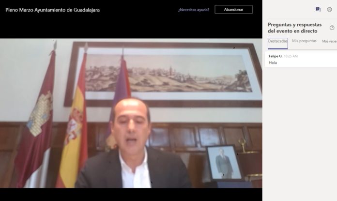 Se puede seguir el desarrollo de la sesión a través de la web municipal, haciendo clic desde aquí. Puede acceder de forma anónima. El alcalde lo dirige desde el despacho de Alcaldía.