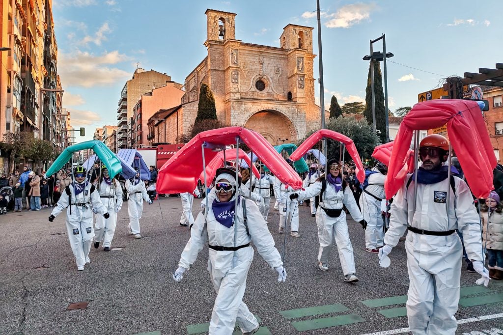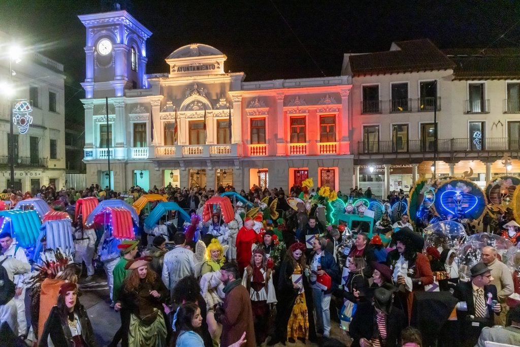 Finalmente, los disfrazados iniciaron su desfile desde Santa María, continuando por La Carrera y calle Mayor. Terminó la comitiva festiva en la Plaza Mayor, donde todos los participantes pasaron por el escenario para su evaluación por parte del jurado.